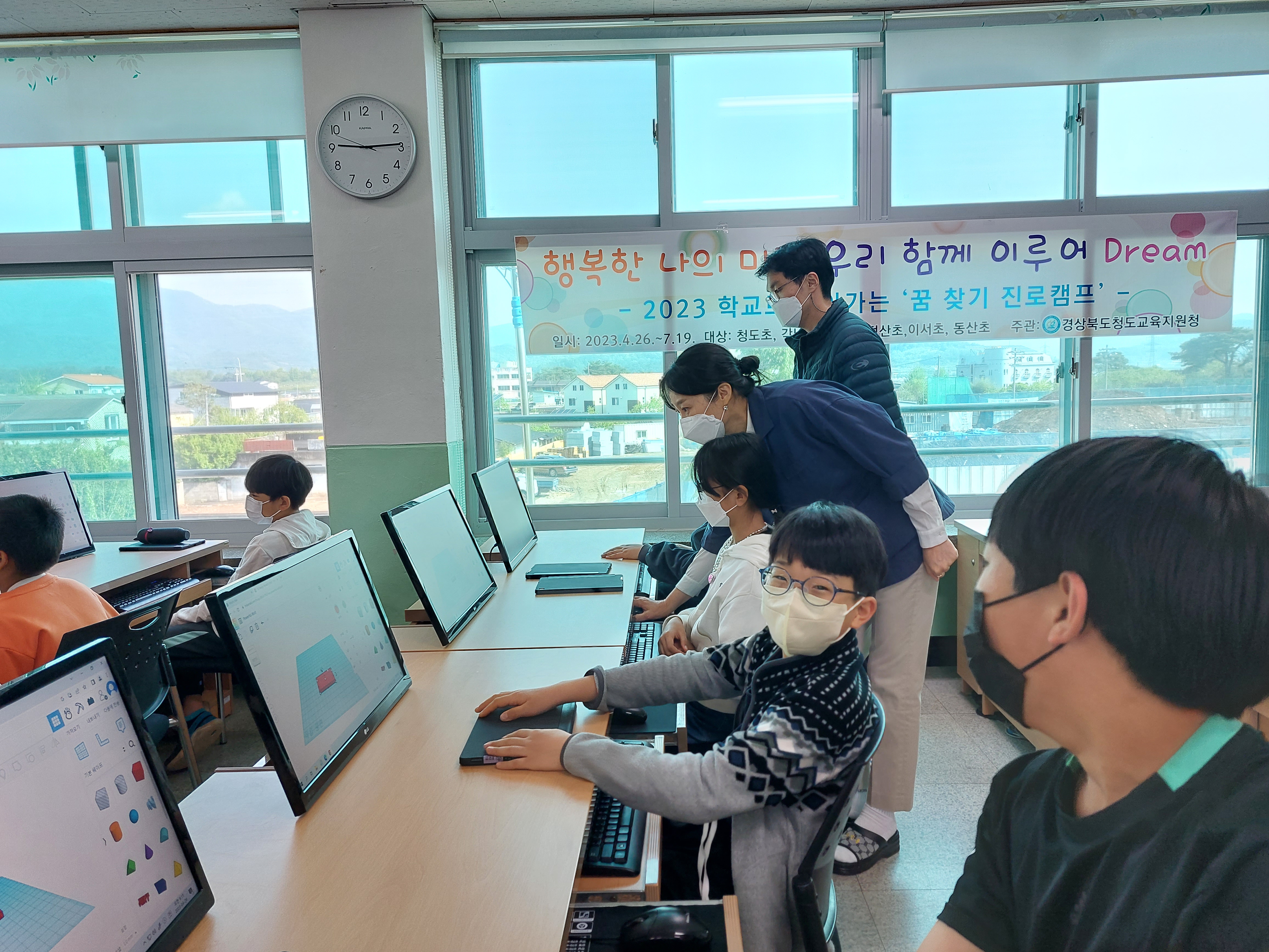 경상북도청도교육지원청(교육장 이동재)은 2023년 4월부터 7월 까지 관내 중학교 및 초등학교 11개교 630여명의 학생을 대상으로 ‘행복한 나의 미래 우리 함께 이루어 Dream’ 프로그램을 계획해, 4월 26일(금) 첫 번째 ‘꿈 찾기 진로캠프’를 개최하였다.