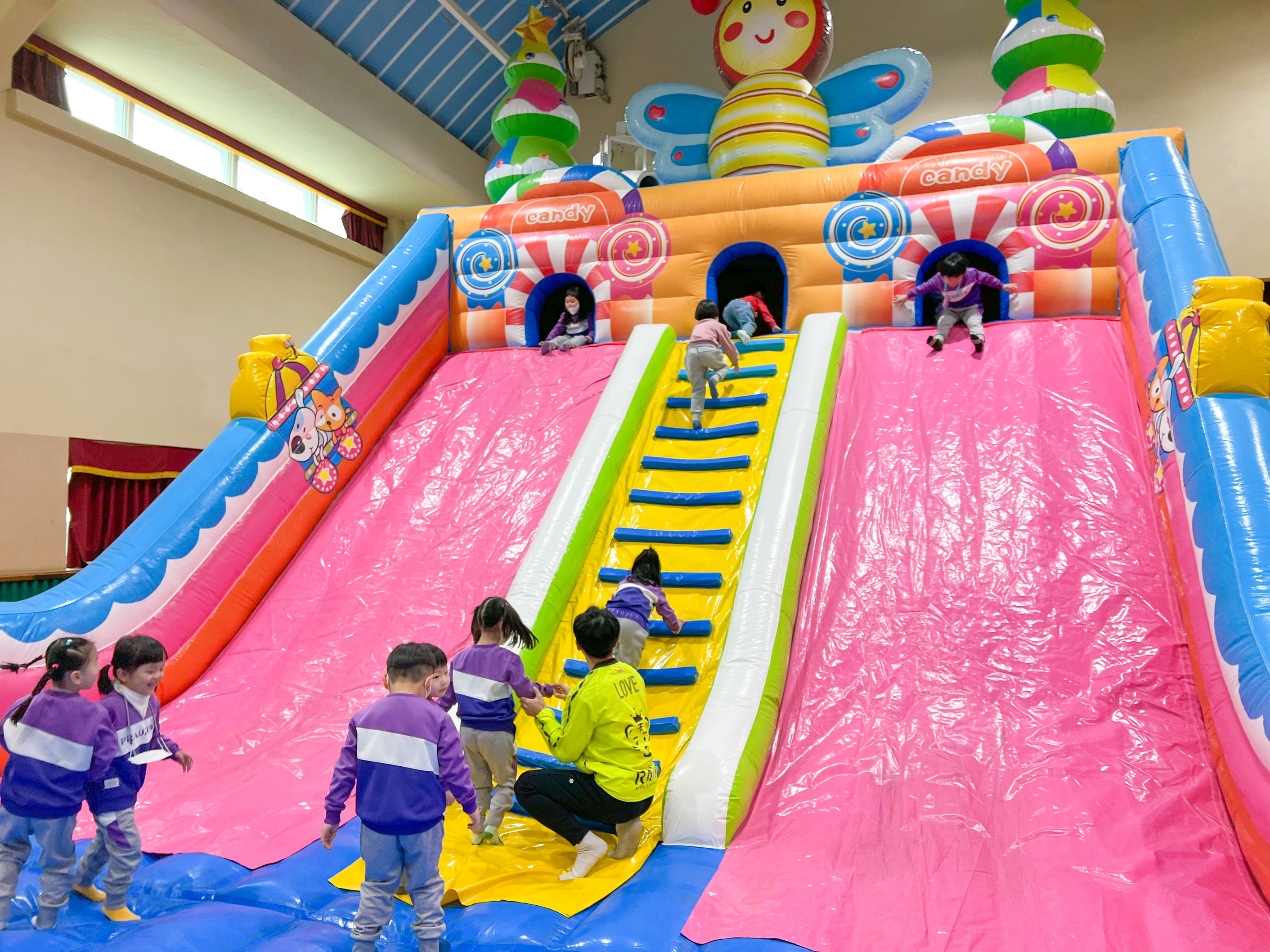 □ 에어바운스 놀이를 통해 유아들은 자신의 신체를 다양하게 움직여 보고, 균형을 잡아보는 등 자신의 신체를 인식하고 조절하며 놀이하는 경험을 하는 시간을 가졌다. 또한 다른 유치원의 친구들과 함께 놀이하는 시간을 통해 다양한 또래관계를 경험하였으며 함께 협력하며 소통하여 성장하는 기회가 되었다.