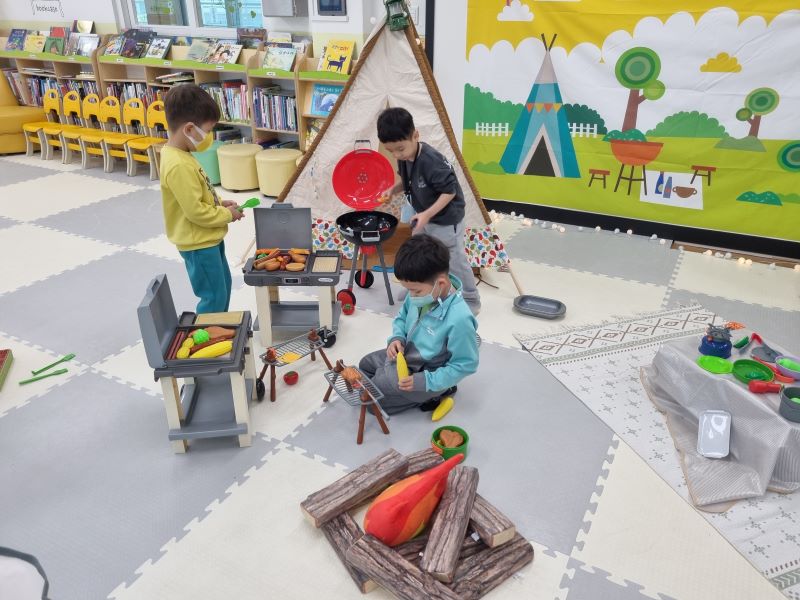 ◇ 이번 체험활동은 폐유리, 양말목, 커피박(찌꺼기) 재활용을 통해 기후 위기에 대응하기 위한 생태전환교육과 꾸미고뽐내기놀이, 미니스포츠놀이, 캠핑놀이 등 다양한 놀이를 경험할 수 있도록 두 가지 영역으로 구성하여 체험활동을 실시하였다.