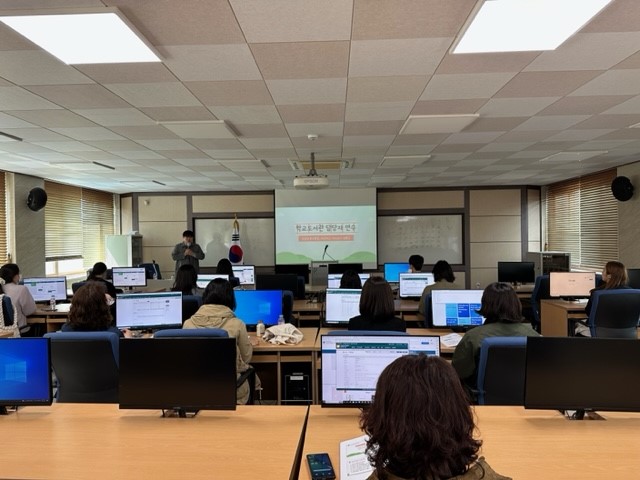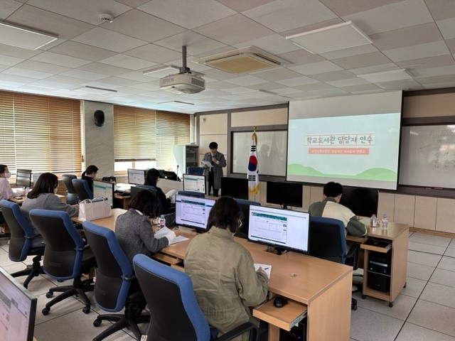 이 날 연수는 학교도서관 업무담당자들에게 학교도서관 업무지원시스템의 대출 반납 관리, 이용자·자료관리, 통계활용, 독서교육종합지원시스템 독후활동 관리 및 활용 교육에 대한 내용으로 도서관 담당자에게 실질적으로 필요한 실무 교육을 실시하였다.