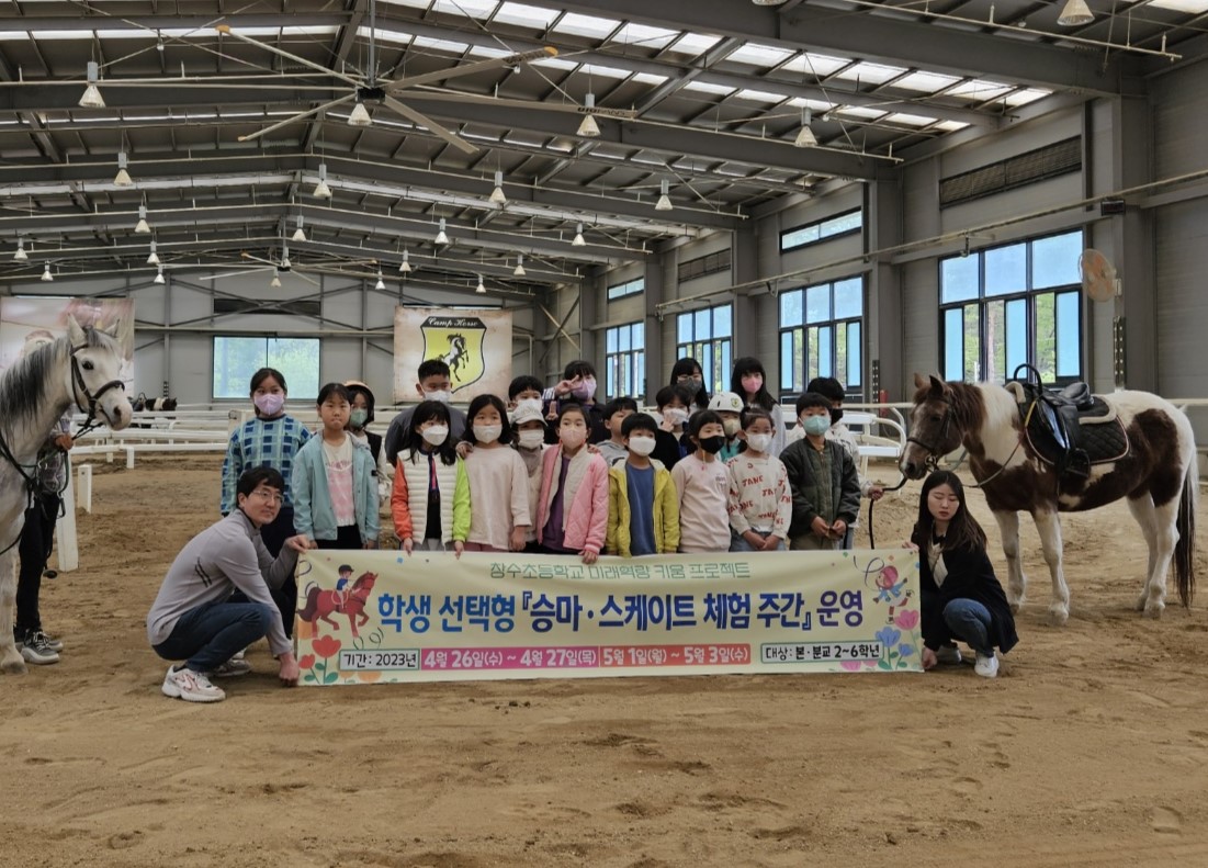 창수초등학교(교장 노병년)는 2~6학년 학생들을 대상으로 승마·스케이트 체험학습 주간을 운영하고 있다. 이번 체험학습은 4월 26일부터 4월 27일, 5월 1일부터 5월 3일까지 총 5일간 이루어지며, 무엇보다 학생 스스로 승마와 스케이트 중 체험학습을 선택하여 배움을 주도하고 있다는 점에서 뜻깊다.