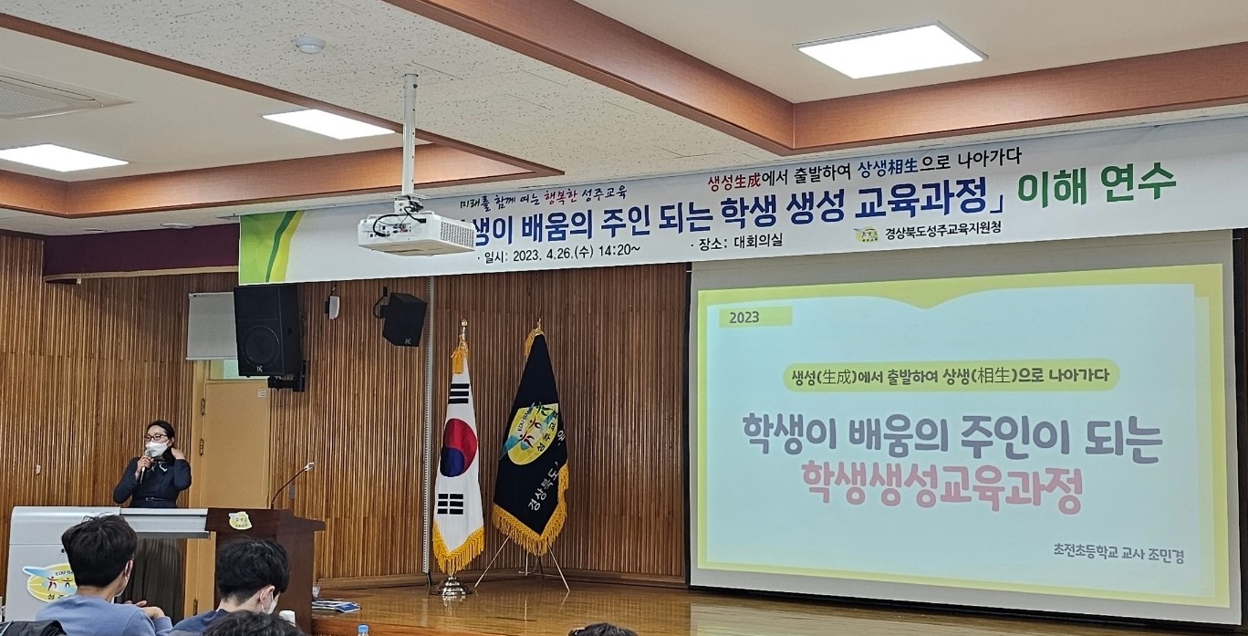 □ 경상북도성주교육지원청(교육장 채종원)은 4월 26(수) 초등학교 연구부장 및 교육과정 담당 교사 24명을 대상으로 성주교육지원청 대강당에서 ‘생성(生成)에서 출발하여 상생(相生)으로 나아가다. 학생이 배움의 주인이 되는 학생 생성 교육과정’라는 주제로 연수를 실시했다.