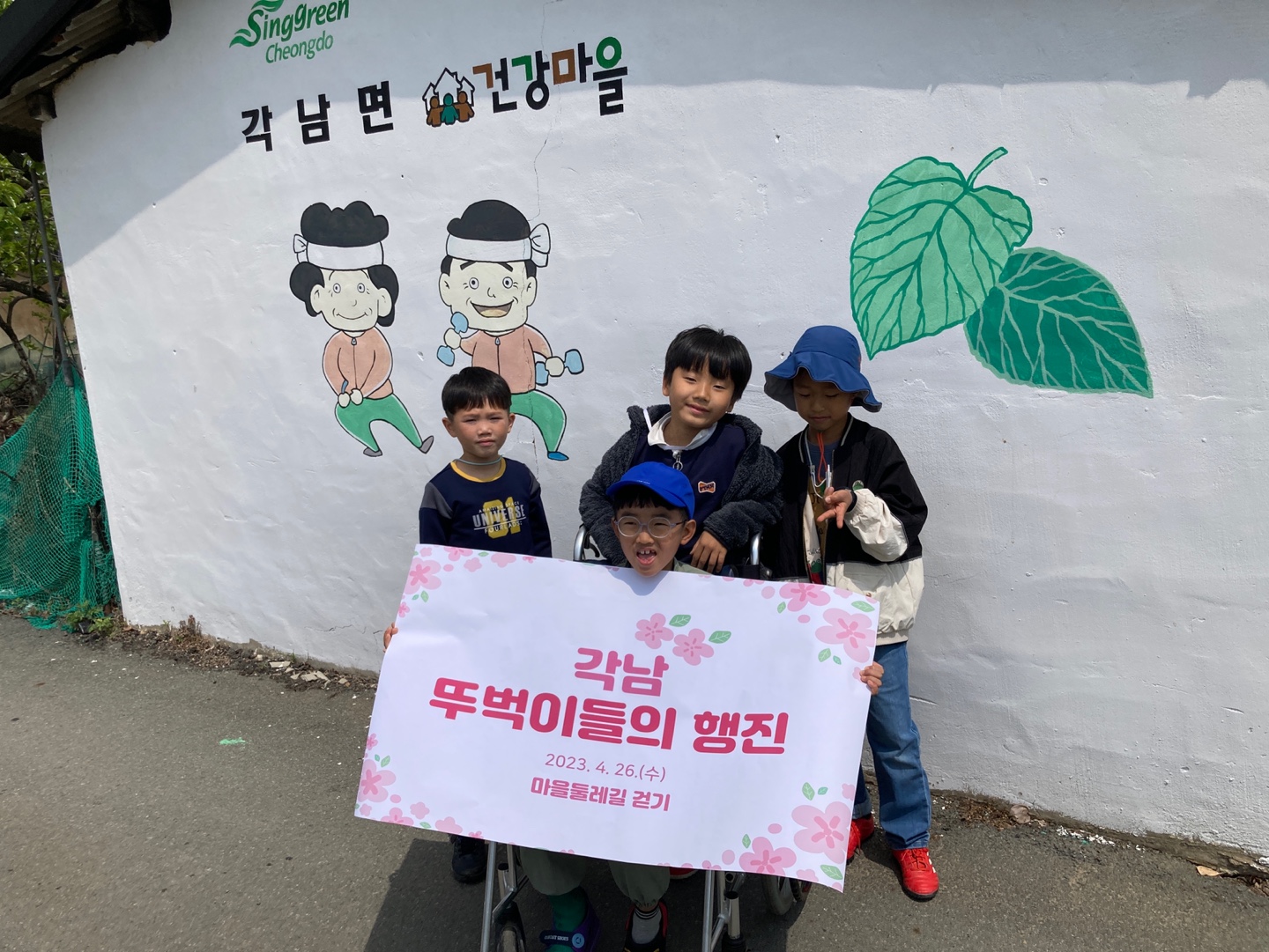각남초 전교생(19명)은 학교에서 출발하여 예리리 벽화 마을로 향하는 둘레길을 걸으며 청도천 생태를 살펴보고 봄철 한창 자라고 있는 마늘, 양파, 복숭아나무, 감나무 등 다양한 식물을 관찰하였다. 또한 둘레길 줍깅(걸으며 쓰레기를 줍는 활동)을 통하여 건강과 환경을 함께 지키는 방법을 실천해 볼 수 있었다.
