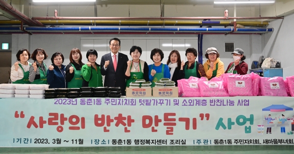 전원경 동춘1동장은 “매년 꾸준하게 동춘1동 자생단체가 한마음으로 이웃을 위해 봉사와 나눔을 실천해 오는 것에 깊이 감사드린다”며 “앞으로도 주위의 소외된 이웃을 위한 다양한 복지서비스를 제공하기 위해 최선을 다하겠다”고 말했다.