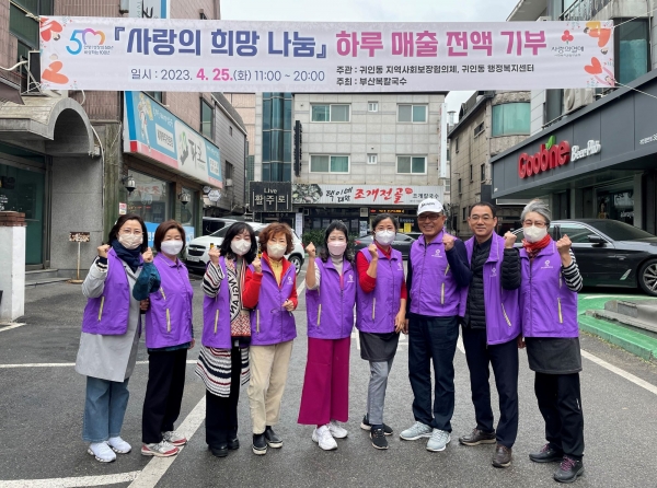 귀인동 먹자골목에 위치한 부산복칼국수는 4월 25일 하루 매출 전액을 이웃돕기 성금으로 기부하는 ‘사랑의 희망 나눔’ 행사를 진행해 성금 688만원을 경기도사회복지공동모금회에 기부했다고 밝혔다.