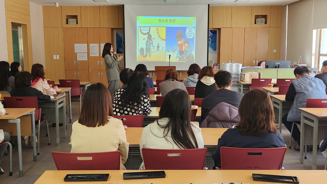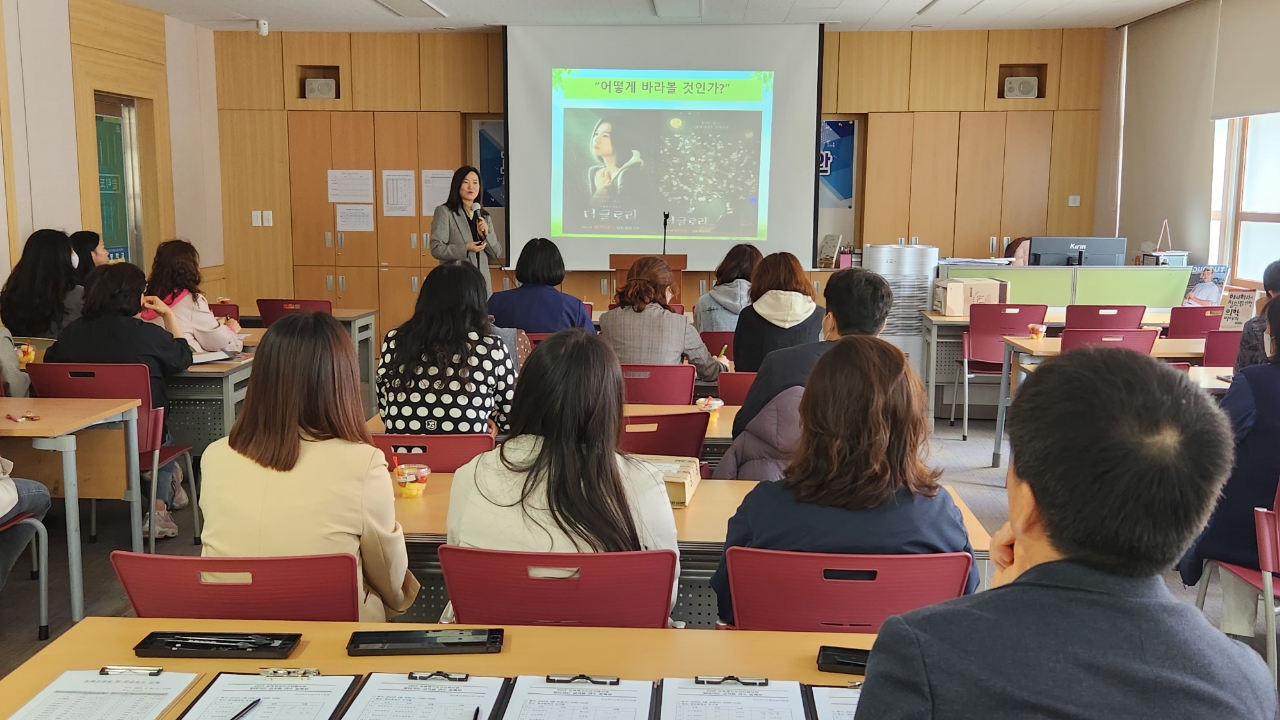 □ 이번 연수는 대구가톨릭대학교 장선희 교수님을 모시고 교육복지우선지원사업의 이해 및 활성화 방안을 주제로 최근 사회적 이슈로 대두되고 있는 학교폭력, 아동학대, 청소년의 빈곤 등에 대하여 함께 고민하고, 대상학생의 이해, 교직원의 역할 등의 내용을 전달하였다.