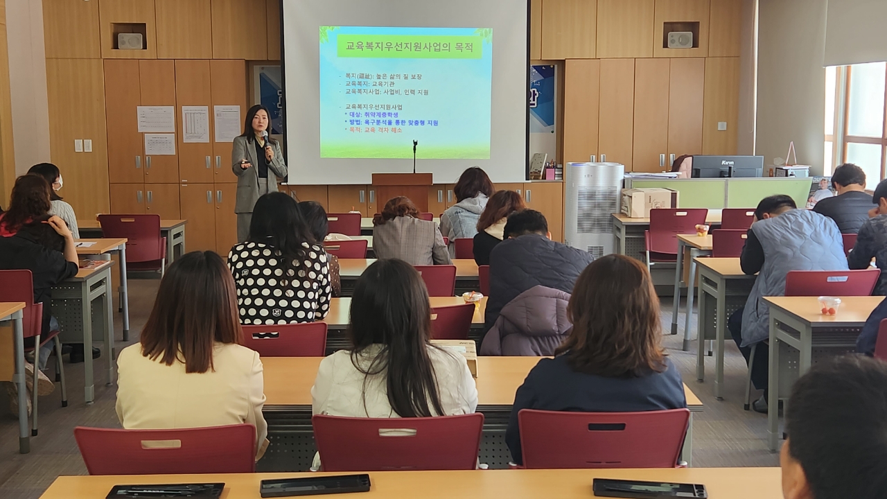 □ 이순호 교육장은 “교직원들의 사업에 대한 이해를 돕고, 교육취약계층의 어려운 학생들이 지속적이고 포괄적인 지원을 받아 사회적 기능과 복지 증진을 도모하고 교육격차해소에 도움이 되길 바란다”고 하였다.