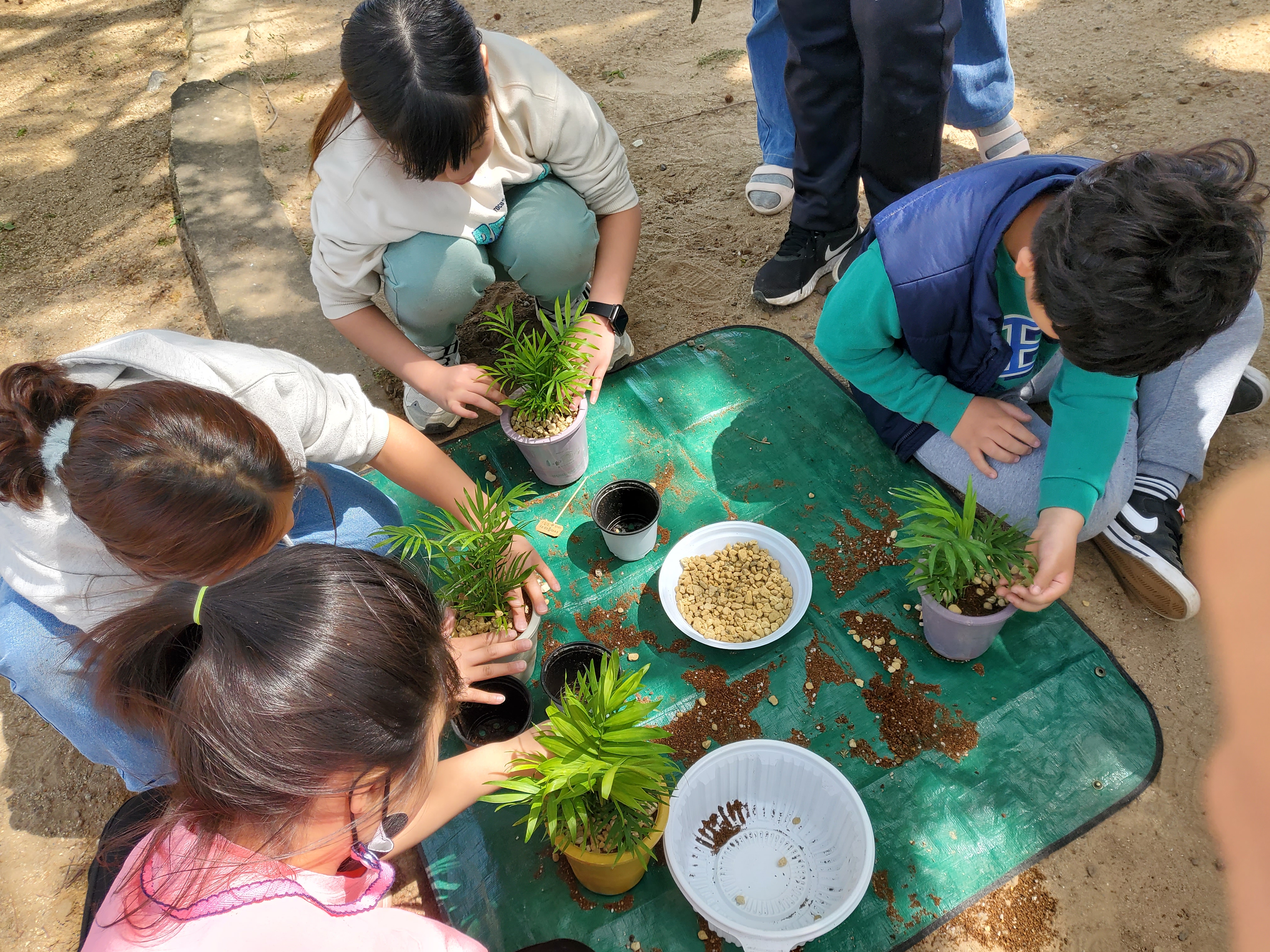 원황초 학생 4학년 이○○ 학생은 직접 폐플라스틱 화분에 테이블야자를 심은 활동을 한 후“우리가 분리수거를 한 플라스틱이 화분으로 만들어진다는 게 신기했고, 테이블 야자라는 식물도 직접 심어 볼 수 있어서 재미있었습니다”라고 했다.