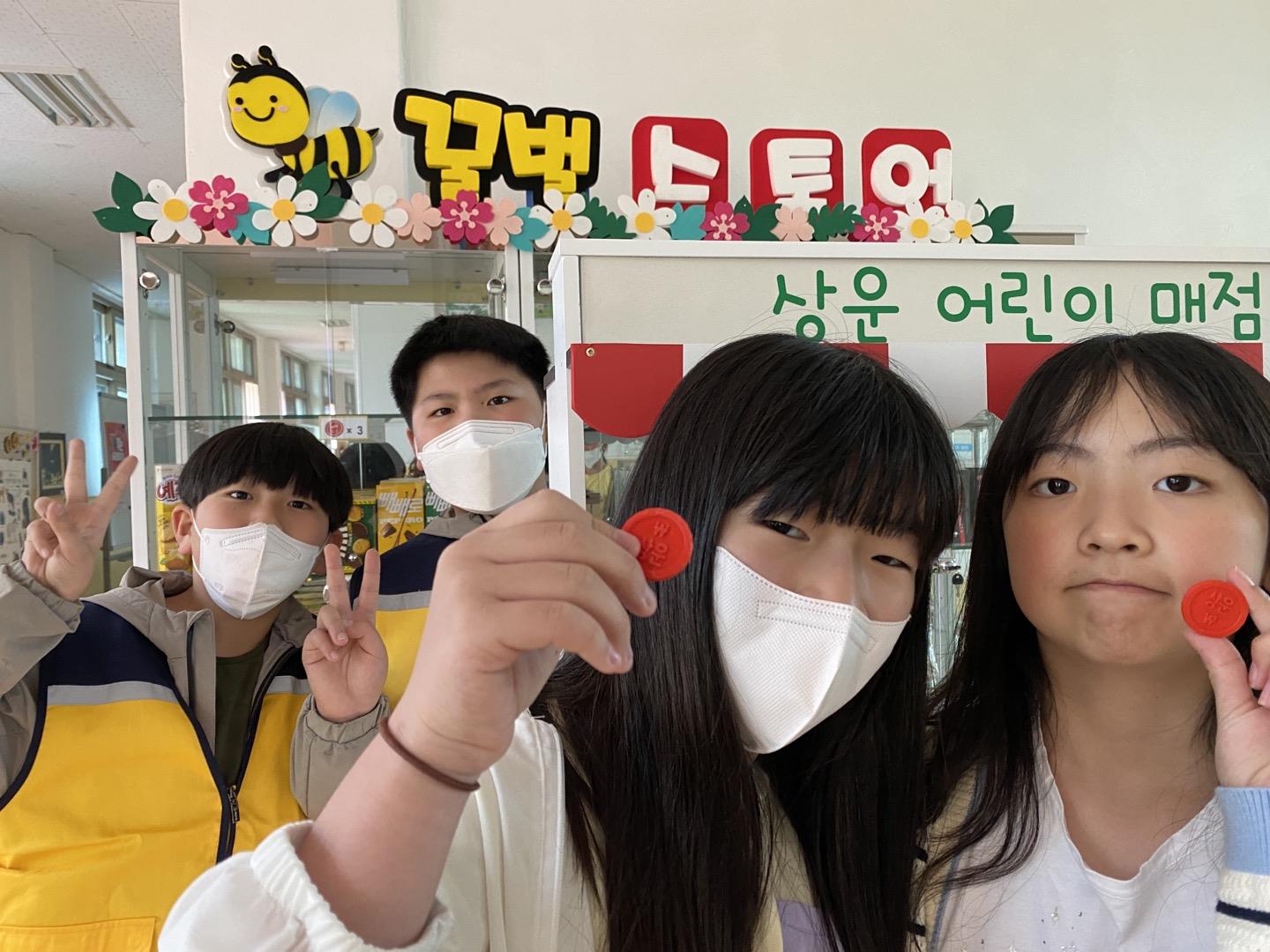 □ 2023년 4월 26일(수), 상운초등학교(교장 오영철)에는 특별한 스토어 오픈식이 있었다. 2023학년도 언어폭력예방학교 특색활동의 일환으로 학생자치회에서 계획하고 운영하는 [꿀벌 스토어(상점)]의 오픈식이었다.