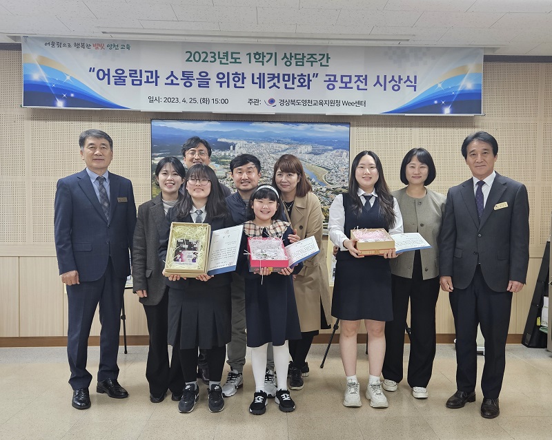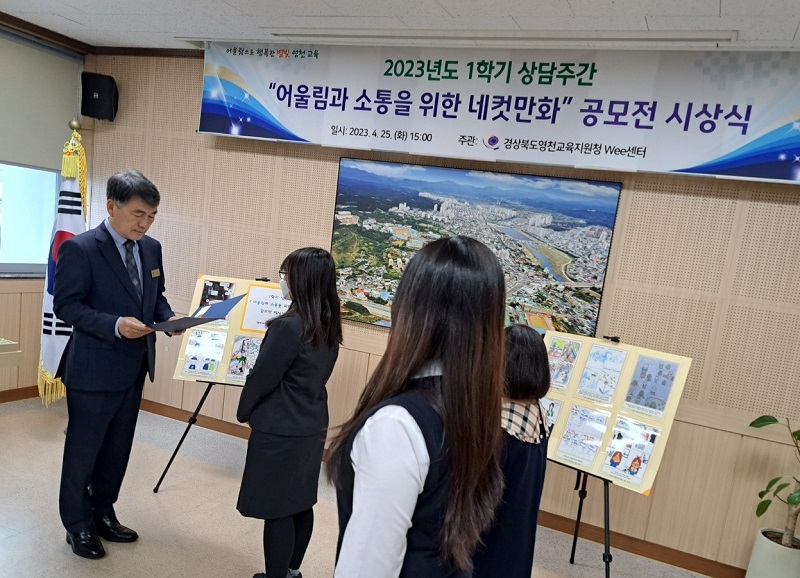 영천교육지원청Wee센터는 1학기 상담주간을 맞이하여 관내 학교 학생들을 대상으로 실시한‘어울림과 소통을 위한 네컷만화’공모전 시상식을 4월 25일(화)에 진행하였다.