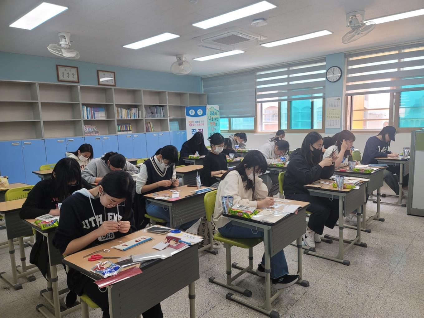 □ 영일중학교(교장 정경일)는 교육복지우선지원사업의 일환으로 1~3학년 학생으로 구성된 나누미 봉사단 21명이 참여한 가운데 자원봉사자교육 및 비대면 핫픽스 필통만들기를 진행했다.
