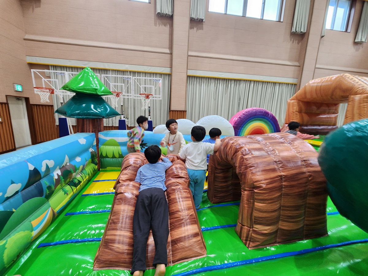 □ 초대형 에어바운스와 범퍼카, 편백나무 교구를 대여하여 초등학교 강당 및 유치원 활동실에 설치하였고, 체험 전 교실에서 담임 선생님과 함께 안전한 놀이 약속을 함께 이야기 나눈 후 일정표에 따라서 체험을진행하였다.
