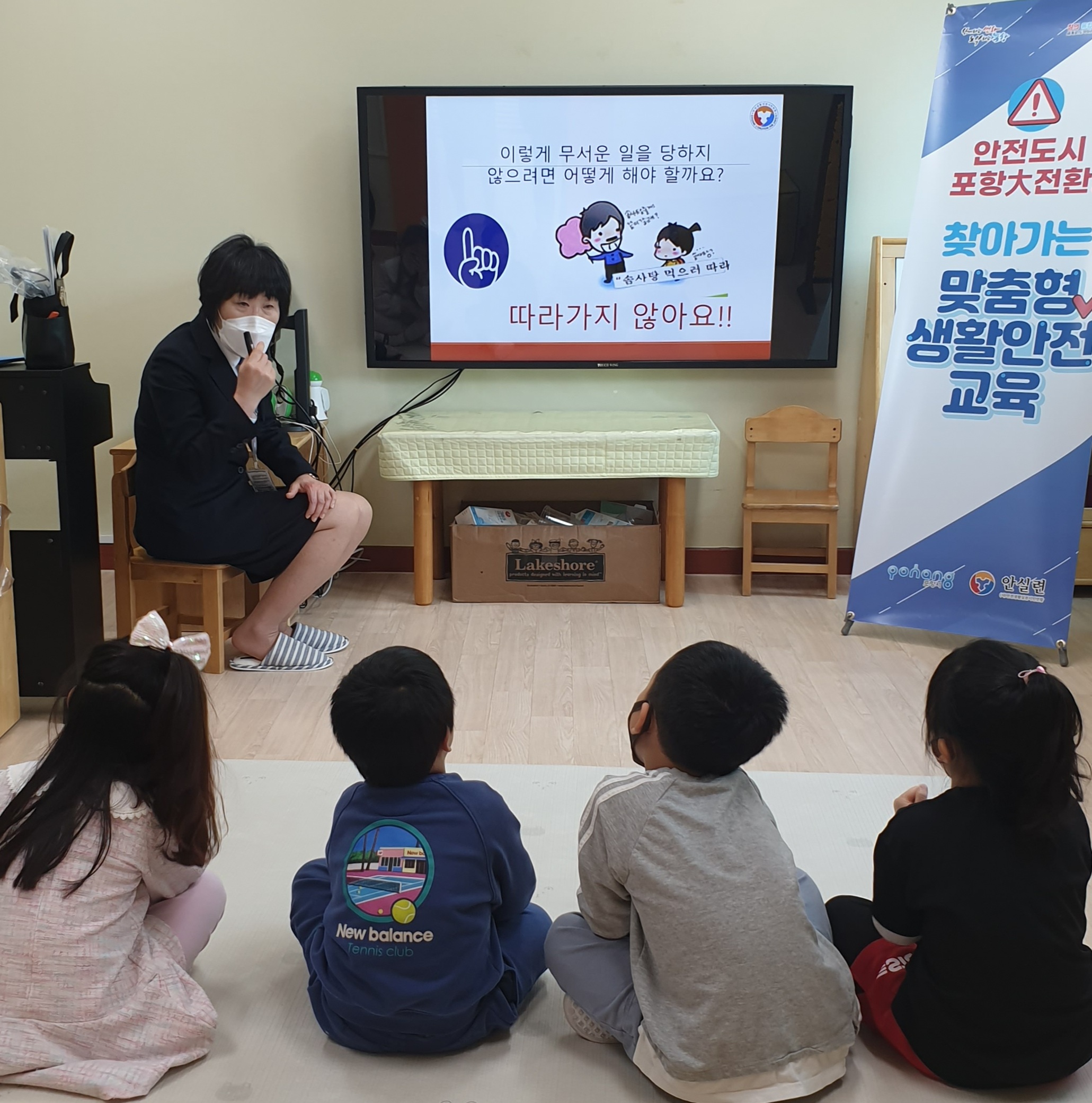 이번 교육은 포항시에서 실시하는 찾아가는 맞춤형 생활안전교육으로 안전생활실천시민연합 포항지부에서 교육 강사 2명이 유치원을 방문하여 안전교육을 실시하였다.