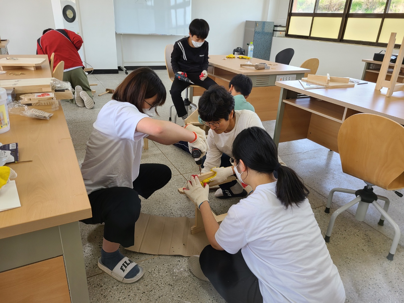 학생들은 목재의 성질에 대해 공부하고 공구사용 시 안전사항에 대해 교육 받은 후 전동공구를 이용해서 직접 목재를 조립하고, 샌딩과정을 거쳐 바니쉬를 바르는 과정까지 즐겁게 체험에 임했다.
