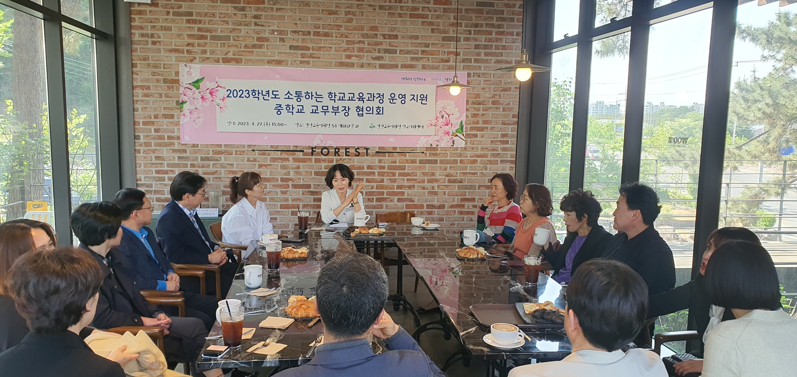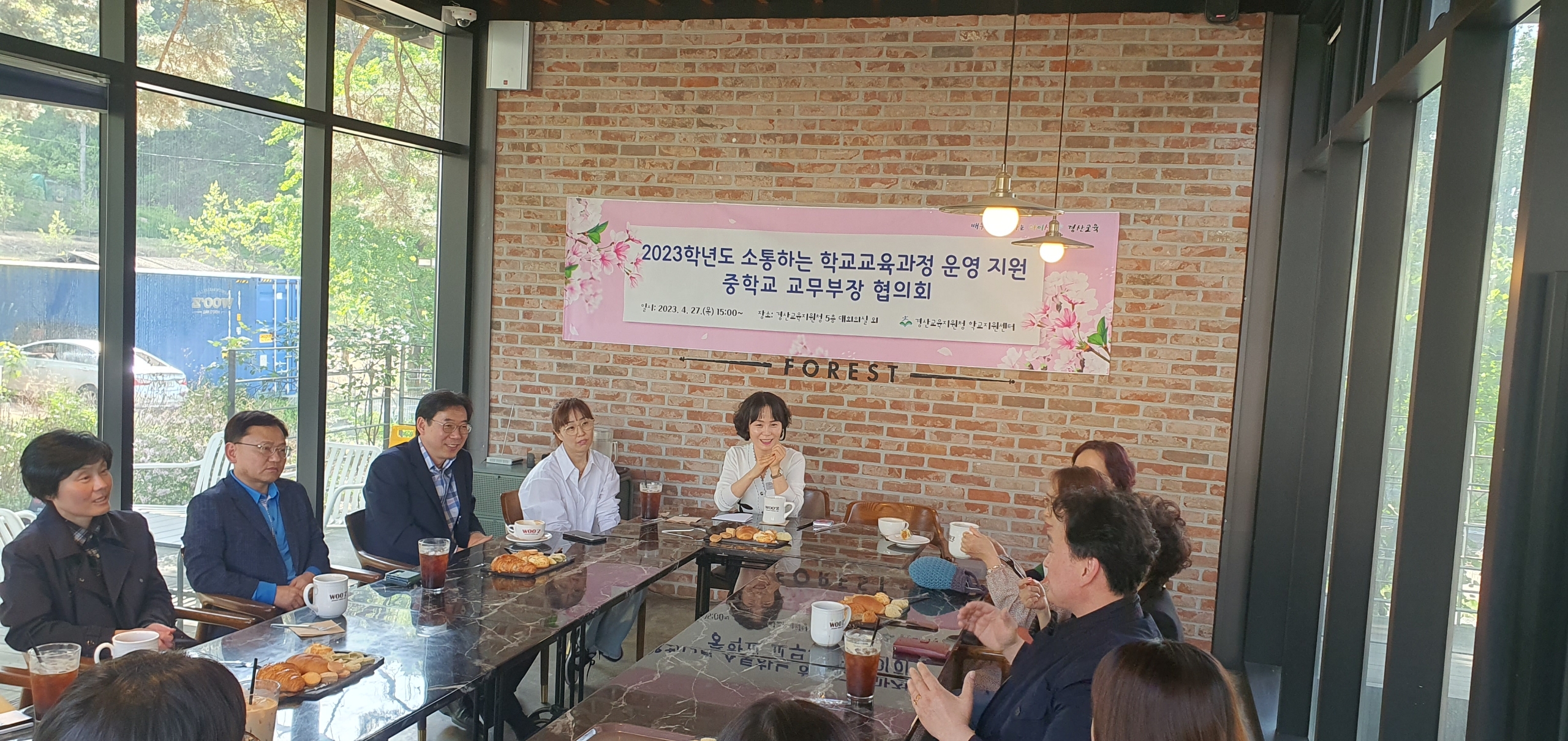 □ 경상북도경산교육지원청(교육장 이양균)은 4월 27일(목) 경산 관내 중학교 교무부장 16명을 대상으로 네트워크 구축과 업무공유를 통한 공동교육과정 운영 대책을 협의하였다.