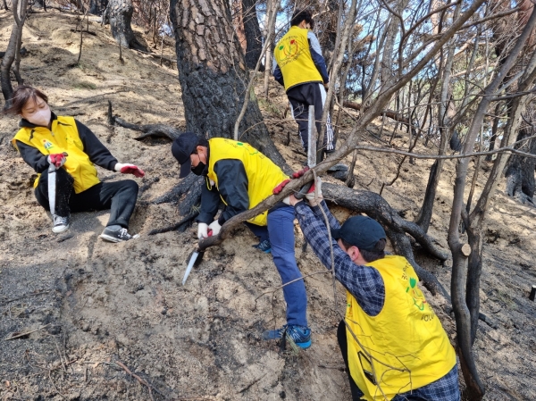 봉사자들은 구슬땀을 흘려가며 화재현장 도로 복구와 산불 잔해물 제거 등 복구 활동에 최선을 다했다.