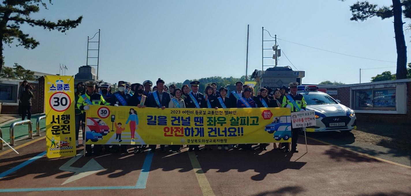 □ 경상북도의성교육지원청(교육장 김성완)은 4월 28일(금) 오전 8시부터 약 30분간 안계초등학교 어린이 보호구역 주변에서 ‘등굣길 어린이 교통안전 캠페인’을 실시하였다.