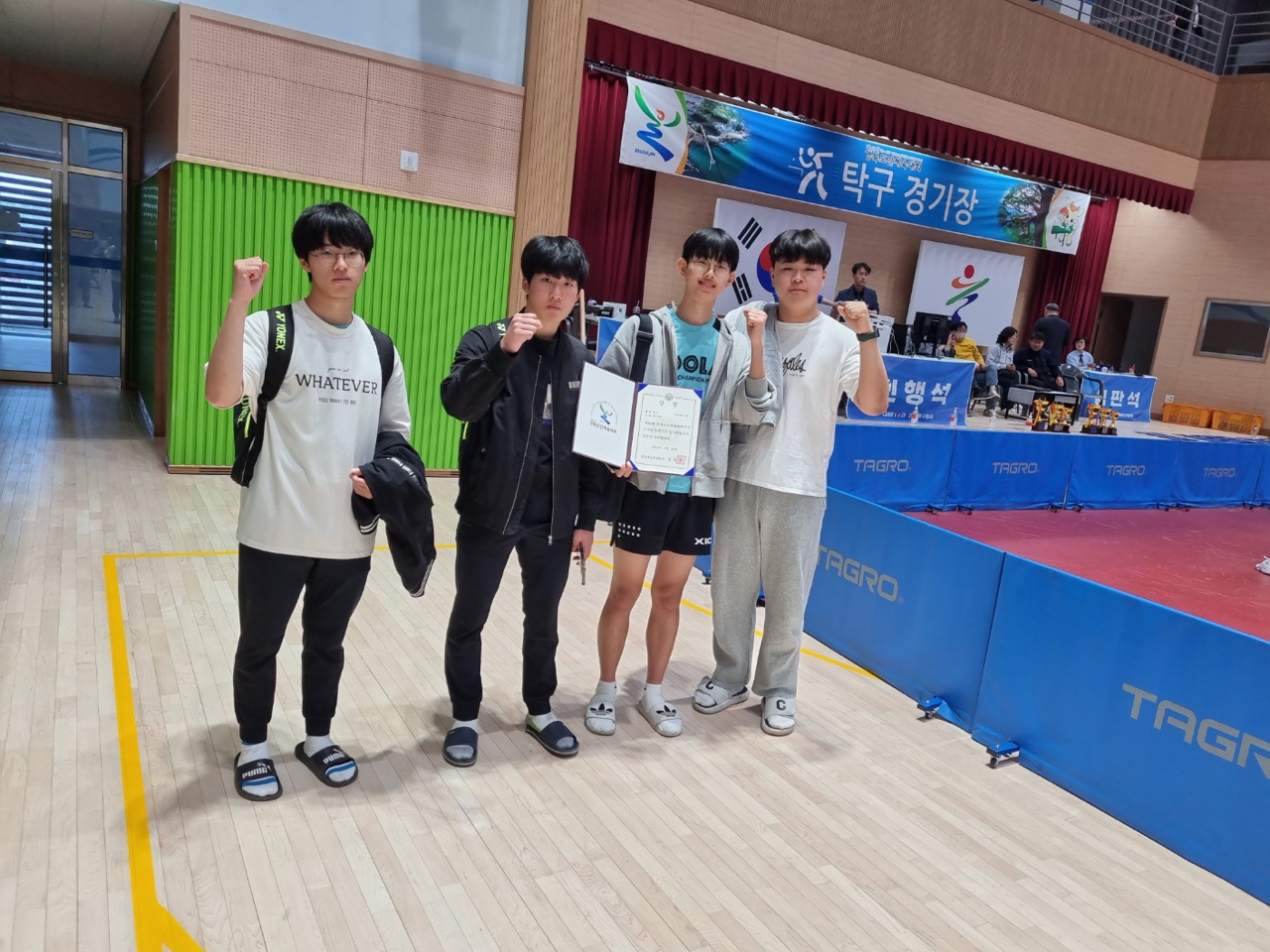 ○ 이번 도민체전 탁구 고등부 단체전에는 권현민, 권준형, 송한선, 송윤선 4명이 참여하였고 이전 대회에 이어 2년 연속 우승이라는 쾌거를 이루어냈다. 이 학생들은 학교 자체적으로 운영되고 있는 학교스포츠클럽 활동을 통해 그 실력을 키웠으며, 평소에도 공부를 열심히 하는 등 ‘지・덕・체를 골고루 갖춘 인재 양성’이라는 학교 교육 방향에 부합하는 인재인 것으로 알려줬다.