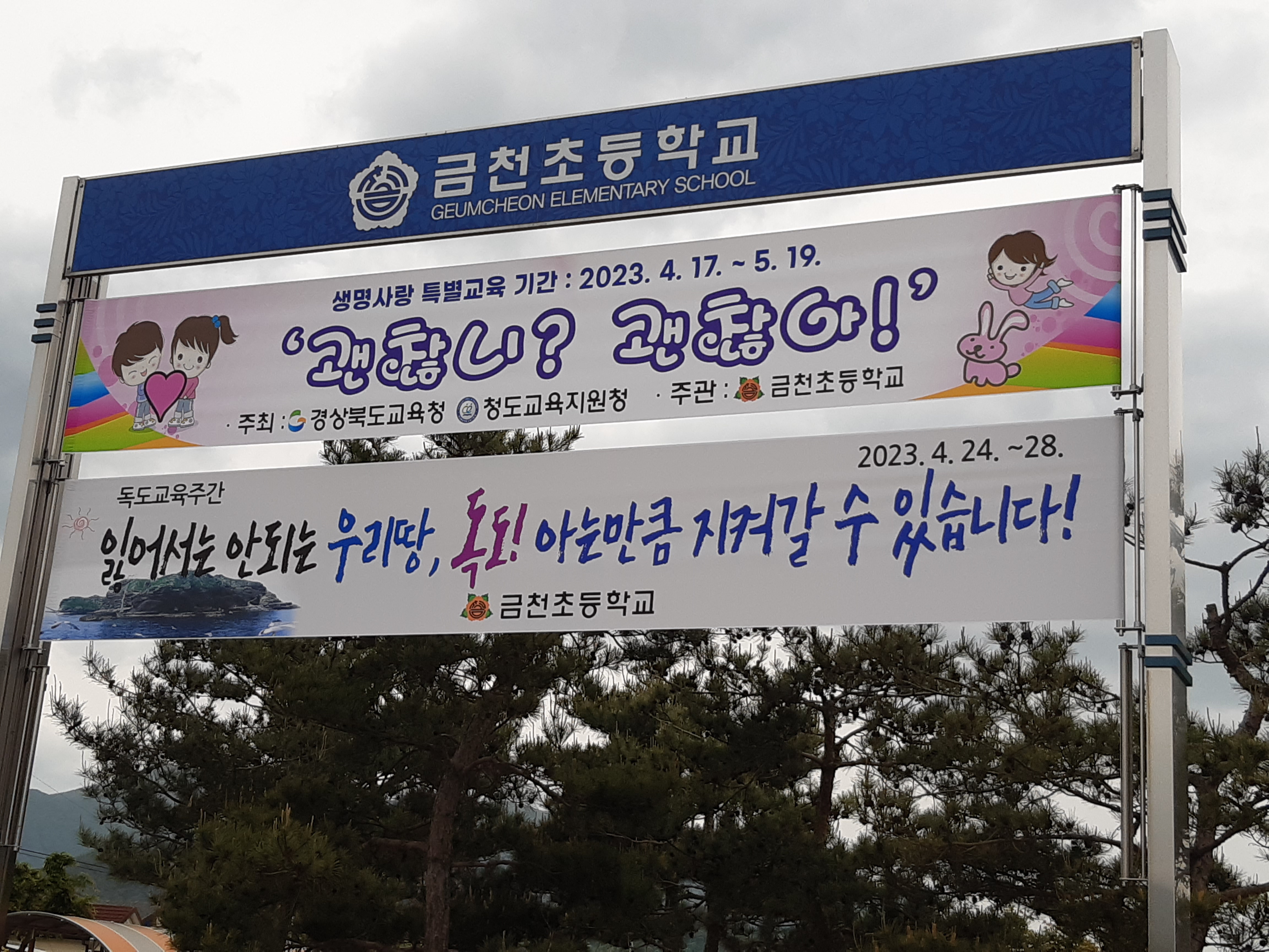 금천초등학교(교장 최성욱)는 4월 24일(월)~4월 28일(금) 5일간, 전교생 46명을 대상으로 ‘잃어서는 안되는 우리땅, 독도! 아는 만큼 지켜낼 수 있습니다.’라는 슬로건 하에 2023학년도 독도교육주간을 운영하였다.