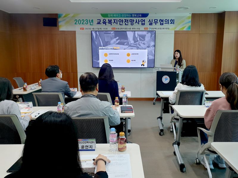 포항교육지원청(교육장 천종복)은 2023년 4월 26일(수) 15:00 포항교육지원청 별관 노을관 5층 대회의실에서 2023학년도 포항 특수교육 사회복무요원 담당자 복무관리 연수를 실시하였다.