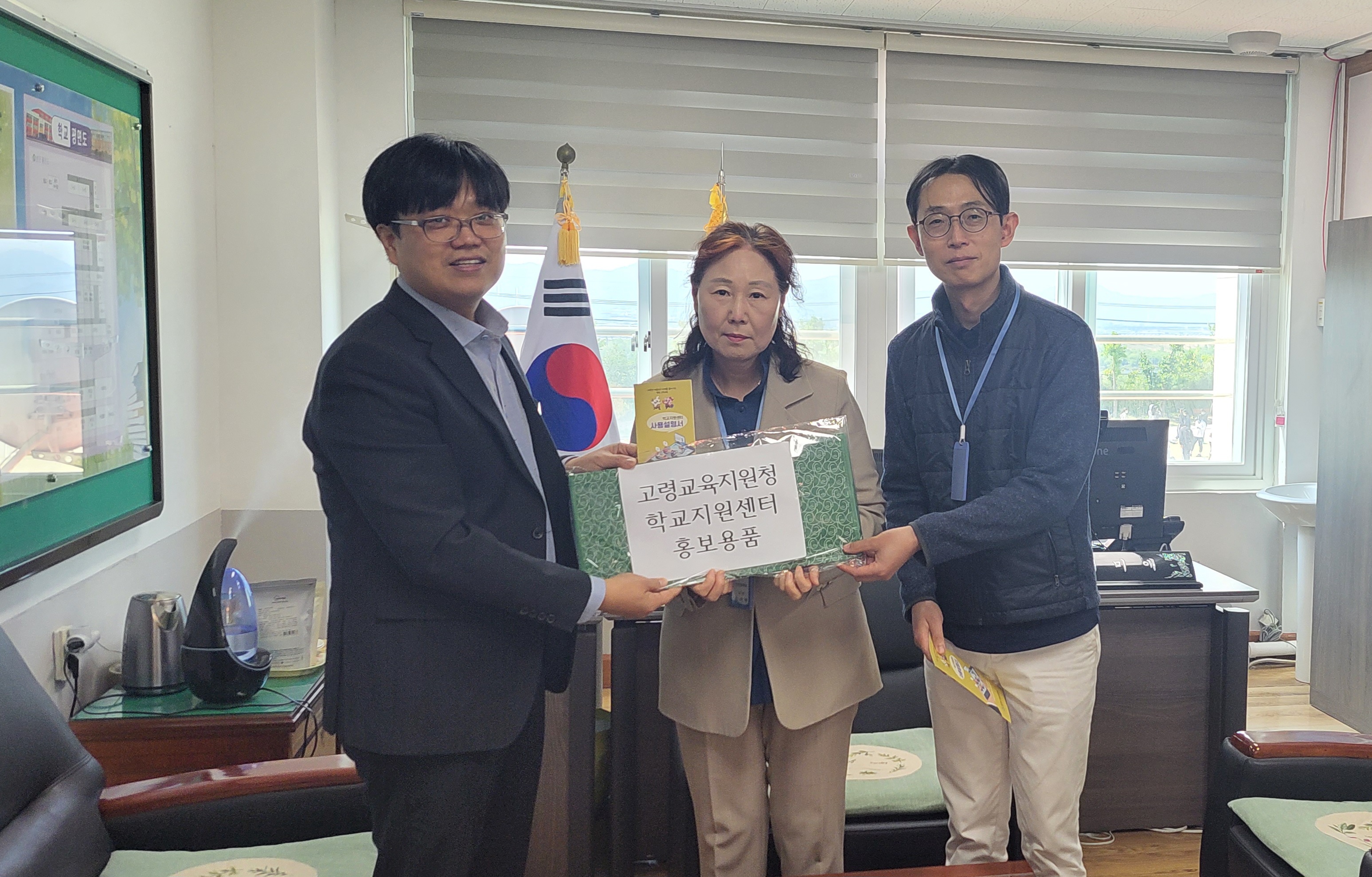 경상북도고령교육지원청(교육장 기세원) 학교지원센터는 4월 28일(금) 관내 초, 중, 고등학교를 직접 방문하여 새롭게 제작된 학교지원센터 안내 리플렛 및 홍보물품을 전달하였다.