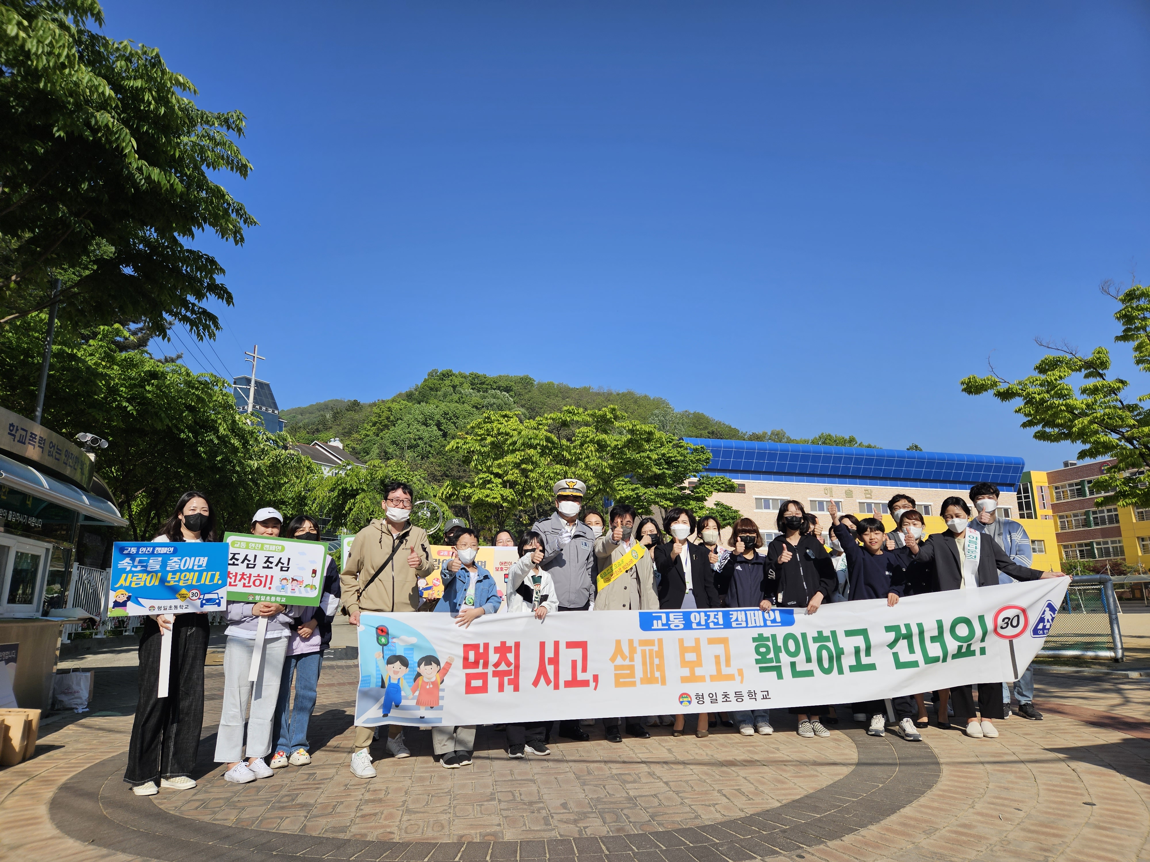 행사는 2023학년도 형일초등학교 녹색어머니회 주최 첫 캠페인으로 참석자들은 교통안전 문구 피켓, 어깨띠 등을 활용하여 캠페인을 펼쳤고 특히 전교학생회 임원은 현수막을 직접 들고 캠페인에 참가하여 등교하는 학생들의 관심을 모았다.
