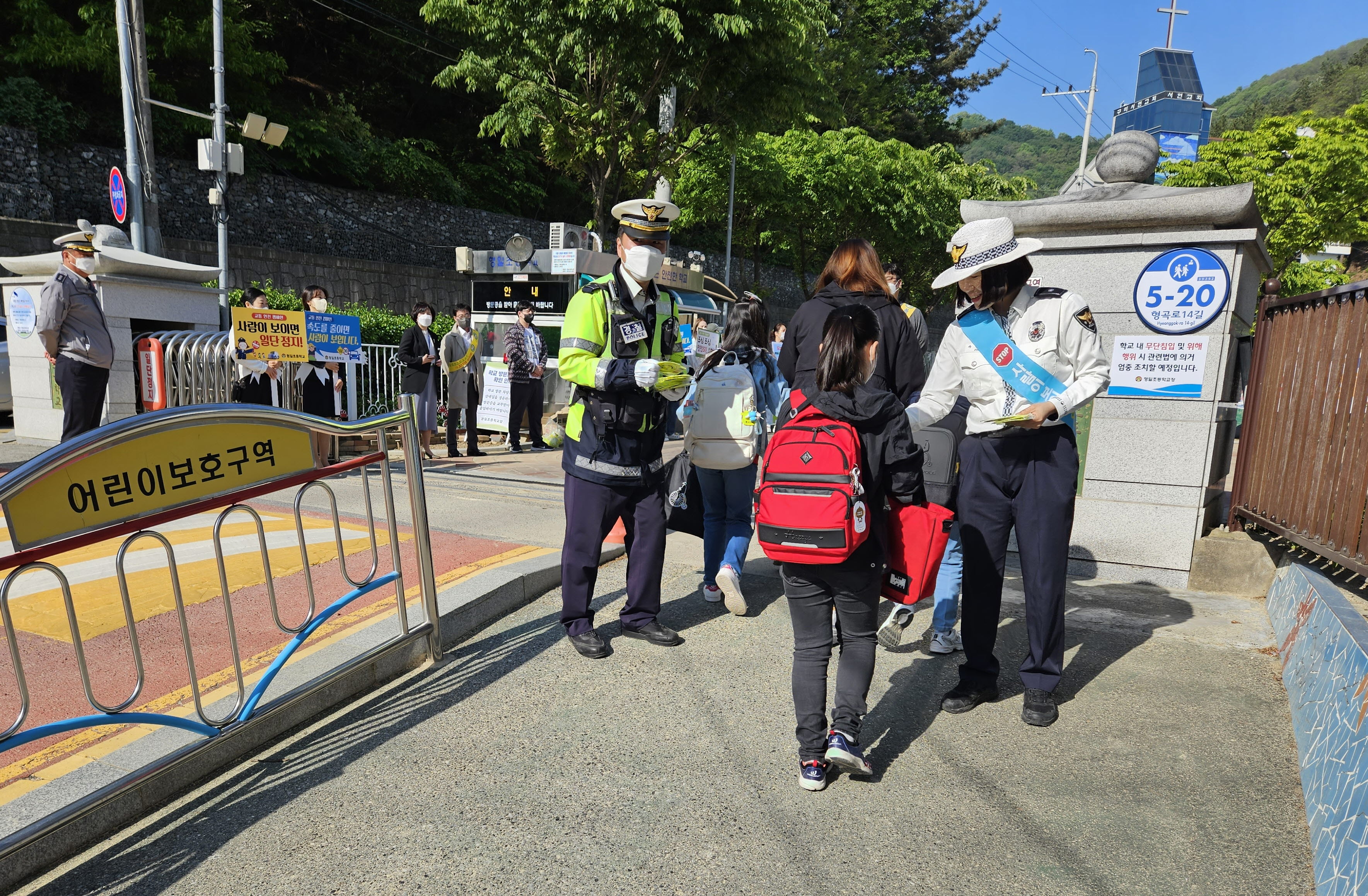 학생들의 안전한 등굣길을 위해 운전자 대상 어린이보호구역 내 운전자 교통법규 준수 「멈추고! 살피고! 확인하고!」를 강조하였으며, 안전 운행 유도 및 어린이 대상 보행 3원칙을 활용한 형광 및 차량 불빛 반사 안전 키링을 배부하여 「어린이 횡단보도 안전하게 건너기」등에 대해 집중 홍보하였다.