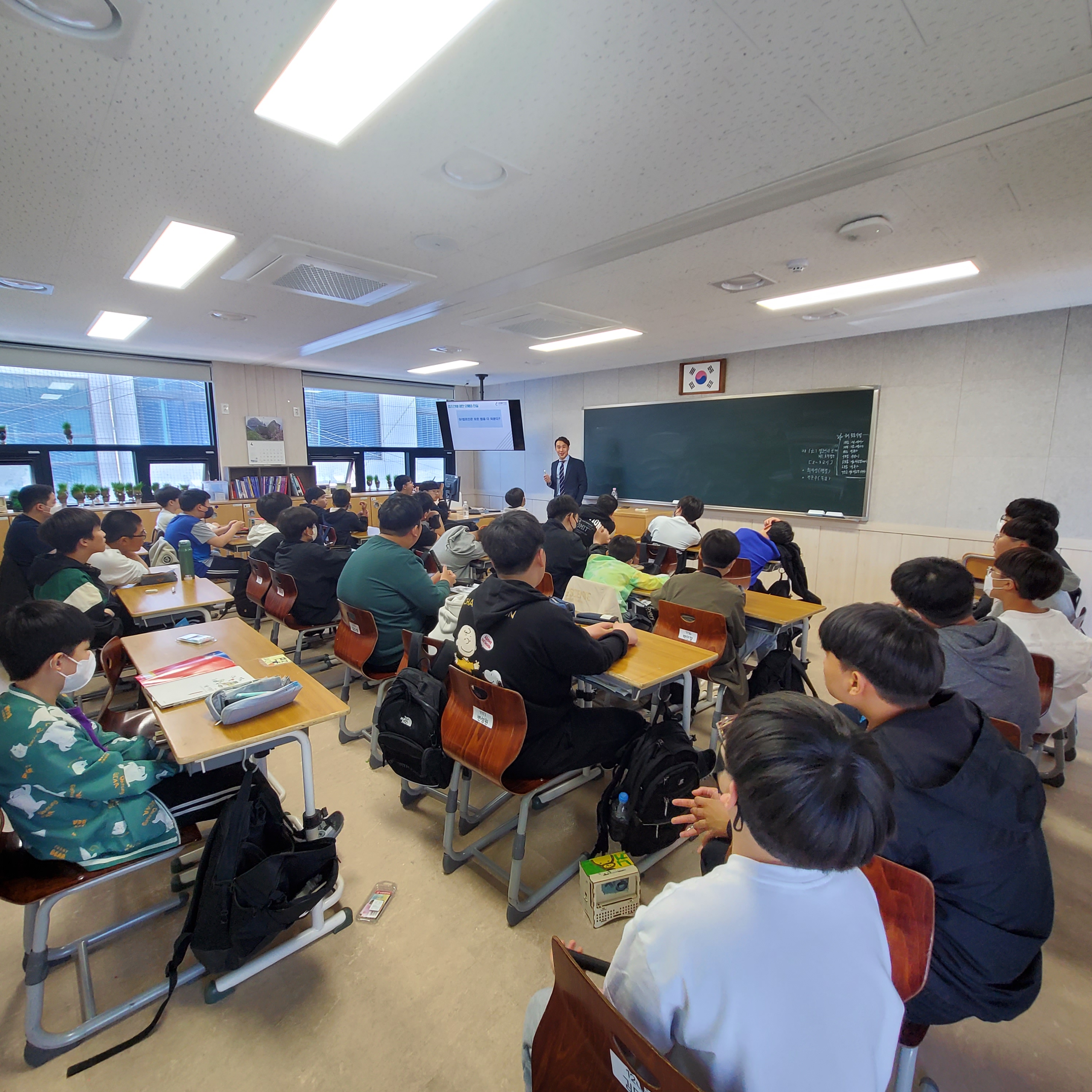 □ 경북 구미시 구미중학교(교장 민경두)는 4월 28일(금), 1학년 전체 학생들 대상으로 『전문법조인과의 만남』이라는 프로그램을 계획하여 다양한 법조인의 세계를 경험할 수 있는 전문직업인 체험을 대한법률구조공단 법문화교육센터에서 주관하여 각 반 교실에서 실시하였다.