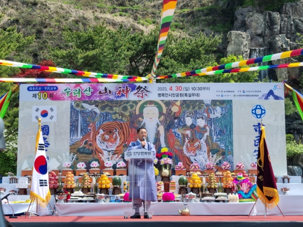 [금요저널] 안양문화원이 주최하고 수리산산신제보존회가 주관하는 제10회 수리산 산신제가 안양시와 한민족전통종교총연합회의 후원으로 지난달 30일 병목안 시민공원 특설무대에서 개최됐다.
