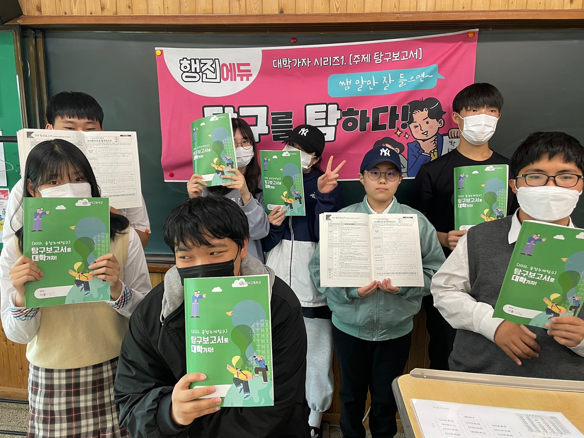□ 학생들이 자신이 선택한 과목을 수강하고 모든 교과에 전공 적합성과 학습 민첩성을 잘 드러낼 좋은 방법은 탐구보고서 작성이고, 보고서 작성법을 전문가를 통해 학생들이 학습할 수 있는 좋은 기회가 될 것이라는 업무 담당자의 설명이 있었다. 체계적이고 실제적인 교과 연계 주제 선정, 탐구주제의 정보원 찾기, 선행연구 검색, 탐구주제별 예시자료 리뷰, 형식을 갖춘 글쓰기, 보고서 서식으로 실습하기 등 전 과정을 각 학급에서 책임 강사의 지도하에 진행되었다.