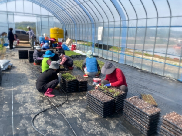 [금요저널] 연천군 중면은 1~3일 지난달 파종한 댑싸리 모종을 포트에 옮겨 심었다.