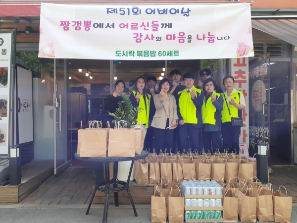 특히 이번 행사에는 마차이나 중식당에서 어르신 40여 분에게 식사를 제공하고 평내동 주민자치회에서 생화 카네이션, 평내동 생활개선회에서 천연샴푸와 천연비누, 짬갬뽕에서 도시락 볶음밥 60세트, 호평동 종로떡전문점에서 절편 떡 등을 후원하는 등 지역사회 내 다양한 곳에서 어르신들께 감사와 사랑의 마음을 전했다.