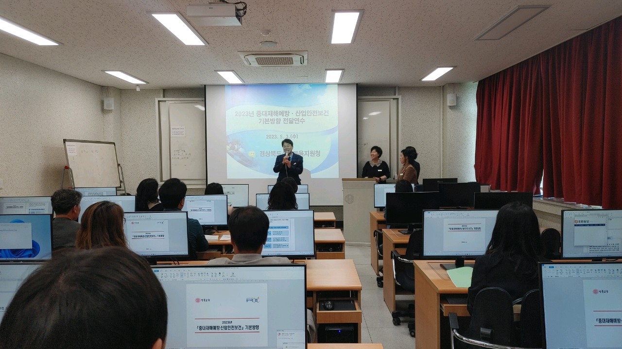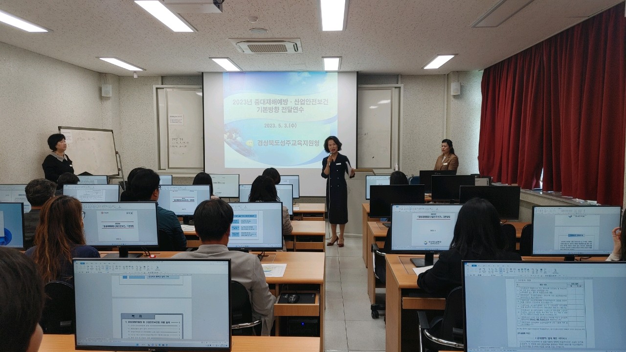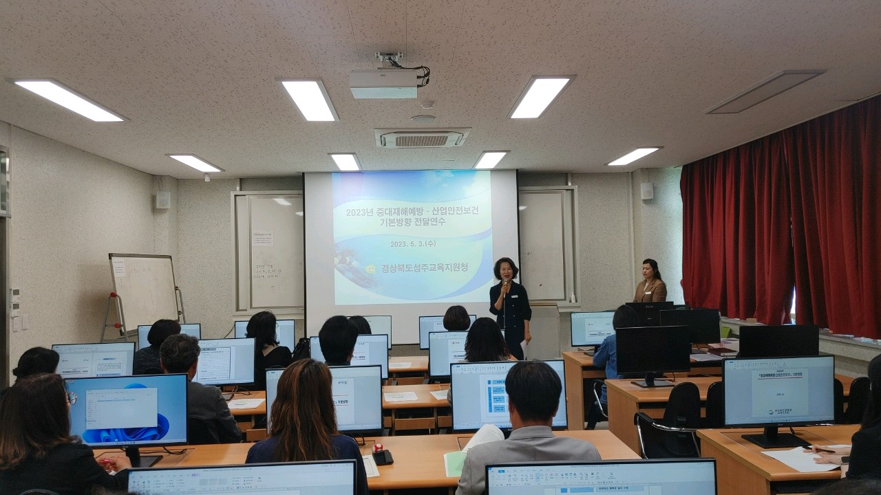 □ 성주교육지원청(교육장 채종원)은 5월 3일(수) 3층 전산교육실에서 관내 공·사립 초·중·고등학교 행정실장 및 소속기관 산업안전보건업무 담당자를 대상으로 2023년 중대재해예방·산업안전보건 기본방향 전달 연수를 실시하고, 안전실천 서약을 하였다.