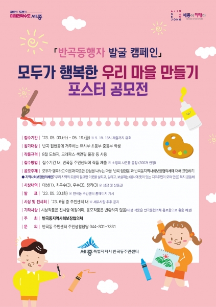 [금요저널] 세종특별자치시 반곡동지역사회보장협의체가 지난 3일부터 오는 19일까지 ‘모두가 행복한 우리 마을 만들기 포스터 공모전’을 개최했다고 밝혔다.