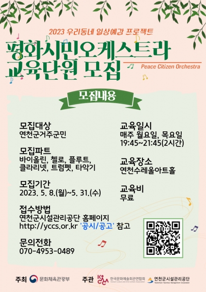 연천수레울아트홀, 연천평화시민오케스트라 교육생 모집