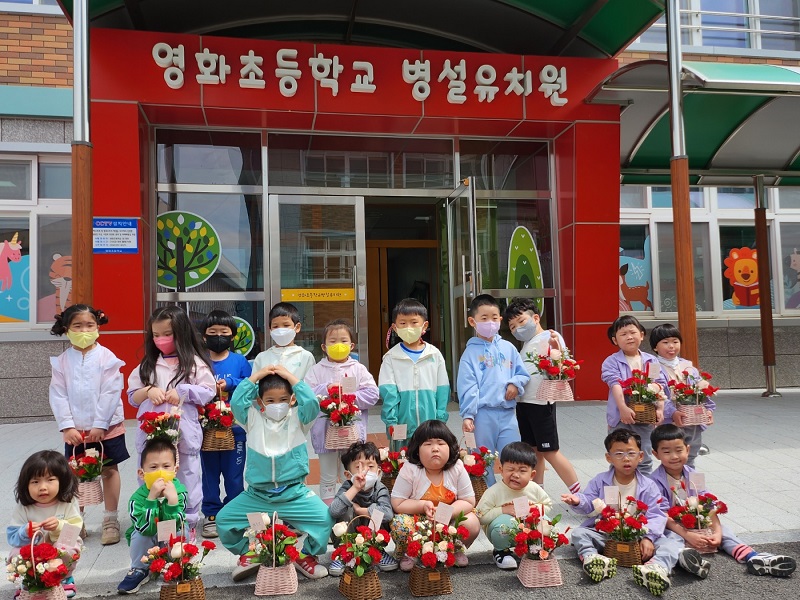 □ 영화초등학교병설유치원(원장 김동철)은 5월 3일(수)에 북안, 거여, 대창초등학교병설유치원과 함께 공동교육과정 운영 카네이션 꽃바구니 만들기 원예체험을 실시하였다.