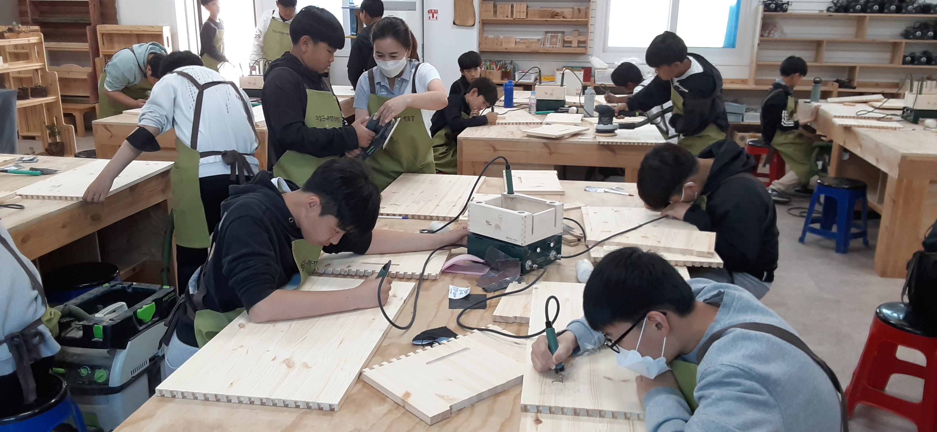 최근 급격히 시장이 커지고 있는 인터넷 개인방송에 대한 이해와 영상 기획, 촬영, 편집 과정을 통해 자신만의 영상을 인터넷 상에 올리는 유튜브 크리에이터 직업 실무 체험, 범죄 현장의 증거 수집과 자동화된 분석 결과를 통해 범인을 특정하는 모든 과정을 자동화시킬 수 있는 기술에 대해 소개하고, 범죄 수사에 이용되는 과학의 원리에 대한 이해와 함께 수사 요령 등을 체험하는 CSI 과학수사연구원체험, 실제 공간에 디지털 가상 정보를 실시간으로 증강하여 사용자가 해당 정보와 상호작용하여 효율성을 향상하는 기술인 AR증강현실에 대해 알아보고, 학생들이 직접 그린 그림이 3D AR 증강현실 이미지로 구현되는 활동, AR 증강현실의 핵심 기술인 홀로그램의 원리를 이해하는 키트를 제작해보는 것으로 하루의 체험을 마쳤다. 또한 음악, 미술 등 예술을 통한 개인별 심리치료 활동 및 심리분석을 직접해보는 예술심리치료사체험, 한창 소리를 지르고 남보다는 나를 먼저 생각하고 행동하는 청소년들이 다른 사람들과 함께 어울려 살아가는 법을 배우는 스피치전문가체험에서는 호감 있는 목소리 내는 법, 자신감 있게 말하기, 면접스킬 실습, 다양한 표정 연구 등 실습을 통해 자신을 좀 더 객관적으로 볼 수 있고 타인을 배려하는 법을 배웠다. 또한 사이언스매직체험에서는 다양한 마술 예시와 실제 마술 체험을 통한 과학원리 연관성을 이해하게 되었다. 마지막 날에는 지역의 목재문화체험장에서 ‘전통문화의 중요성과 목공 관련 진로․직업의 미래’라는 제목으로 김복연 대표님의 의미심장한 특강을 듣고, 자신만의 전통 탁자를 직접 제작해보는 기회를 가졌다. 제작은 도브테일 – 샌딩 – 버닝 – 조립 – 칠까지의 전 과정으로 이루어졌는데, 전통 짜맞춤 기법 중에 주먹장 맞춤법이라고 한다. 특히 조립을 끝내고는 버닝(인두) 기계를 이용하여 나만의 문양으로 멋을 낼 때에는 서로 더 멋있게 표현하기 위해 진지하게 경쟁하는 모습이 보기에 좋았다.