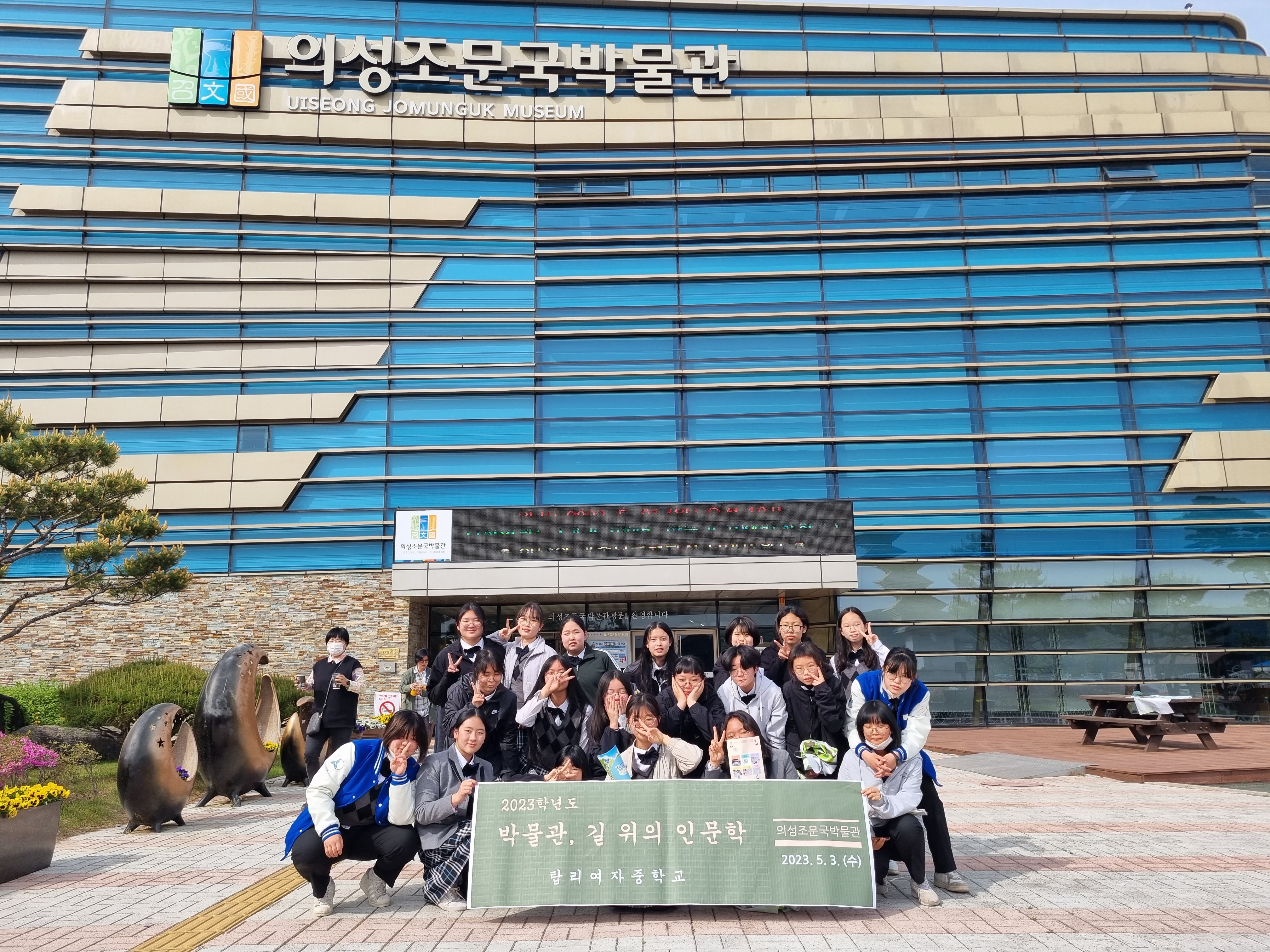 탑리여자중학교(교장 신숙미)는 2023. 5. 3.(수) 길 위의 인문학 프로그램을 전교생이 함께 의성 조문국 박물관 2023년 찾아가는 박물관 프로그램과 연계하여 14시부터 16시까지 실시하였다.
