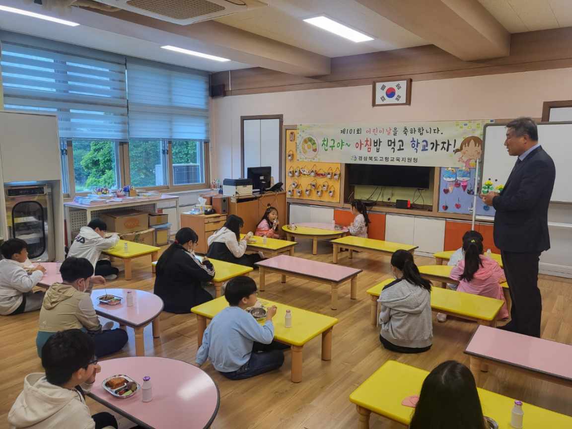 기세원 교육장은 “제101회 어린이날을 진심으로 축하하며, 우리 고령의 희망인 어린이들의 건강을 지키기 위해 꼭 아침밥을 먹고 등교하여 학교생활을 활발하게 할 수 있기를 바란다.”라고 당부하였다.