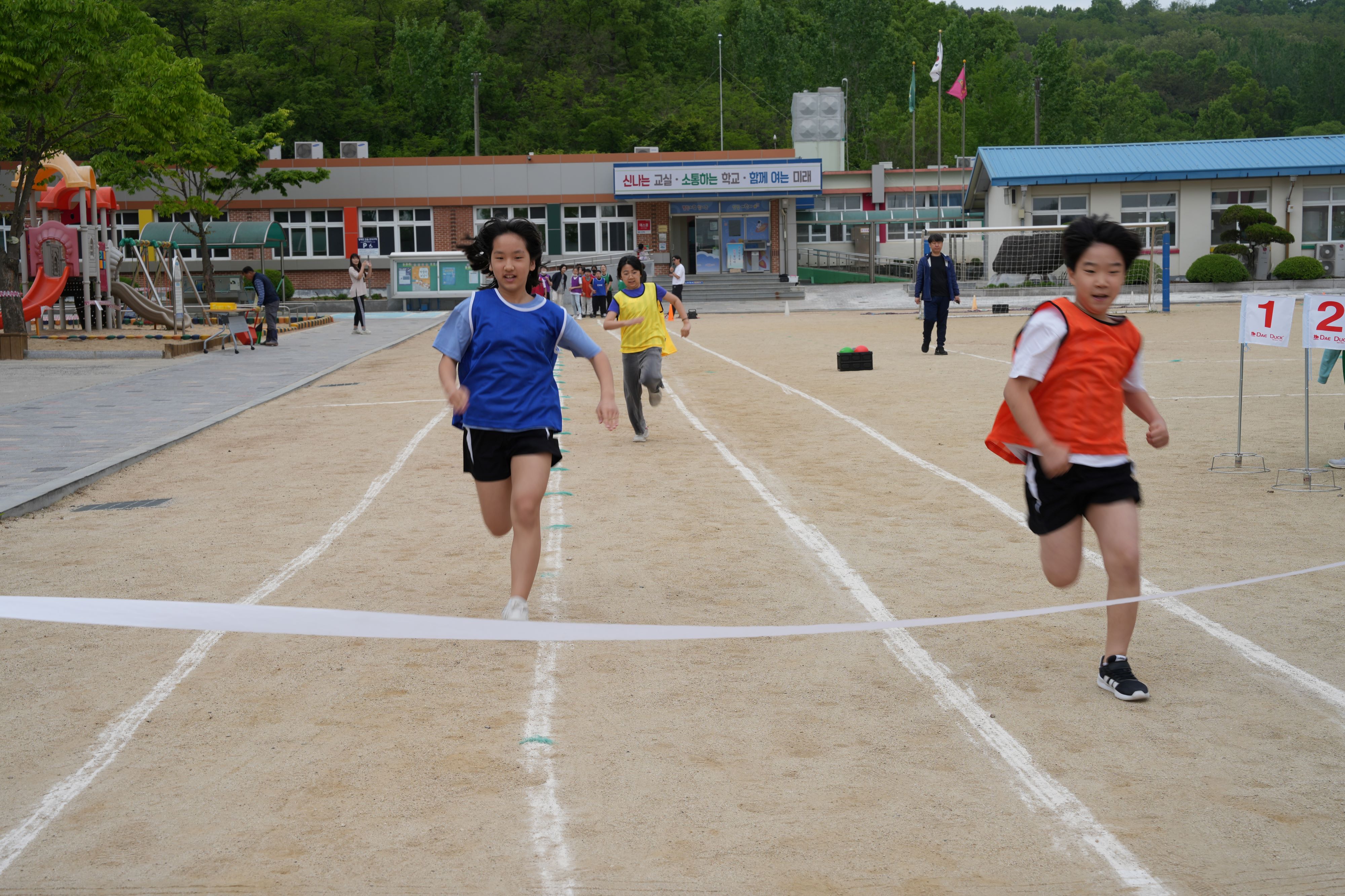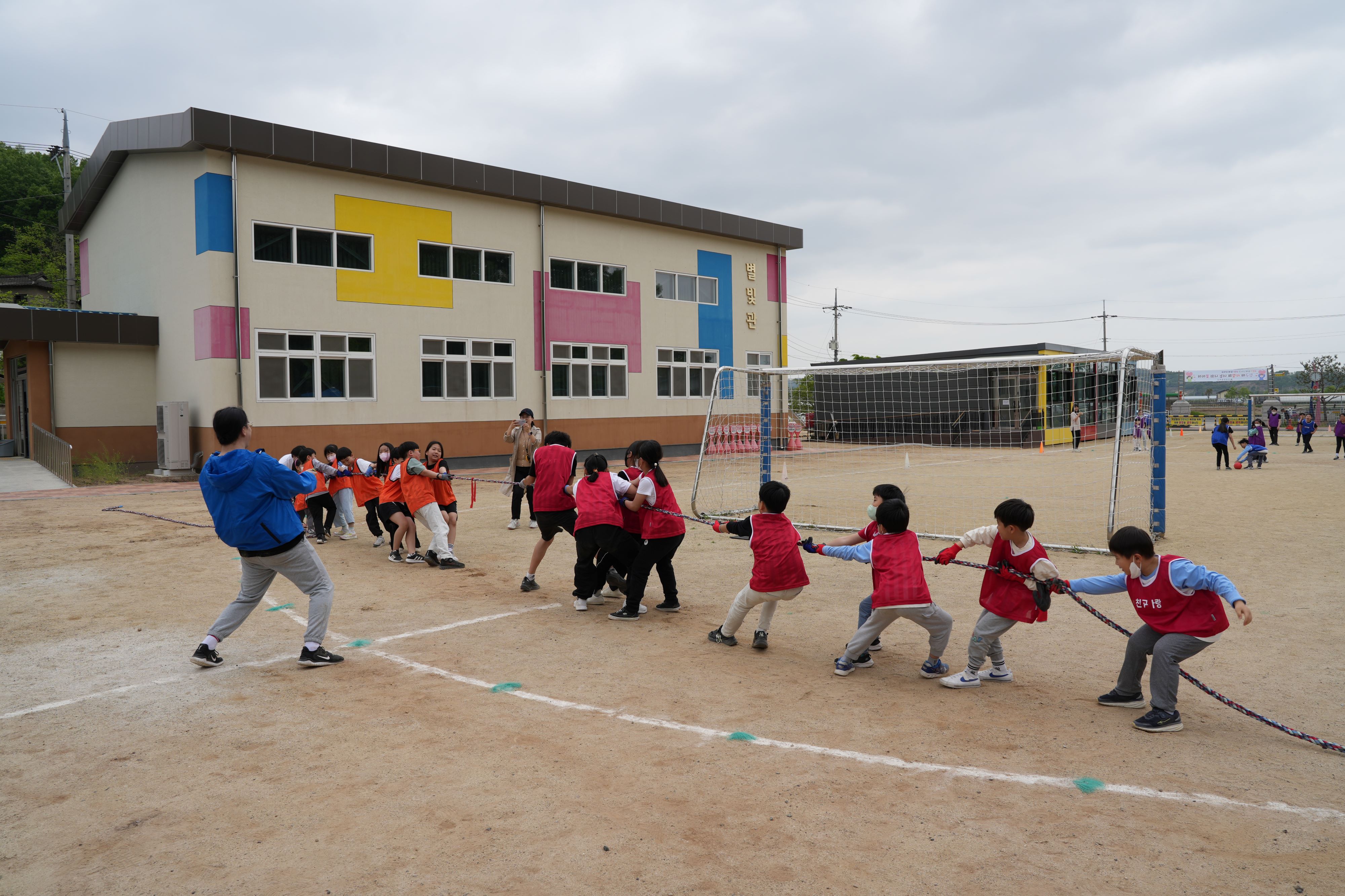 □ 또한 이번 체육대회는 전교생과 선생님이 함께 참여하여 이어달리기, 미션 달리기, 피구, 줄다리기 등의 경기를 진행하는 축제의 한마당이 되었다. 특히 전교생이 모이는 행사인 만큼 모든 학년이 함께 어울리며 팀을 구성하였고 특색있는 응원을 나누고 최선을 다하는 모습을 보여 더욱 의미 있는 어린이날 기념행사가 되었다. 참여한 학생들은 친구들과 체육활동을 통해 한마음이 되어 협동심도 기르고 서로를 응원하여 행복했다고 소감을 밝혔다.