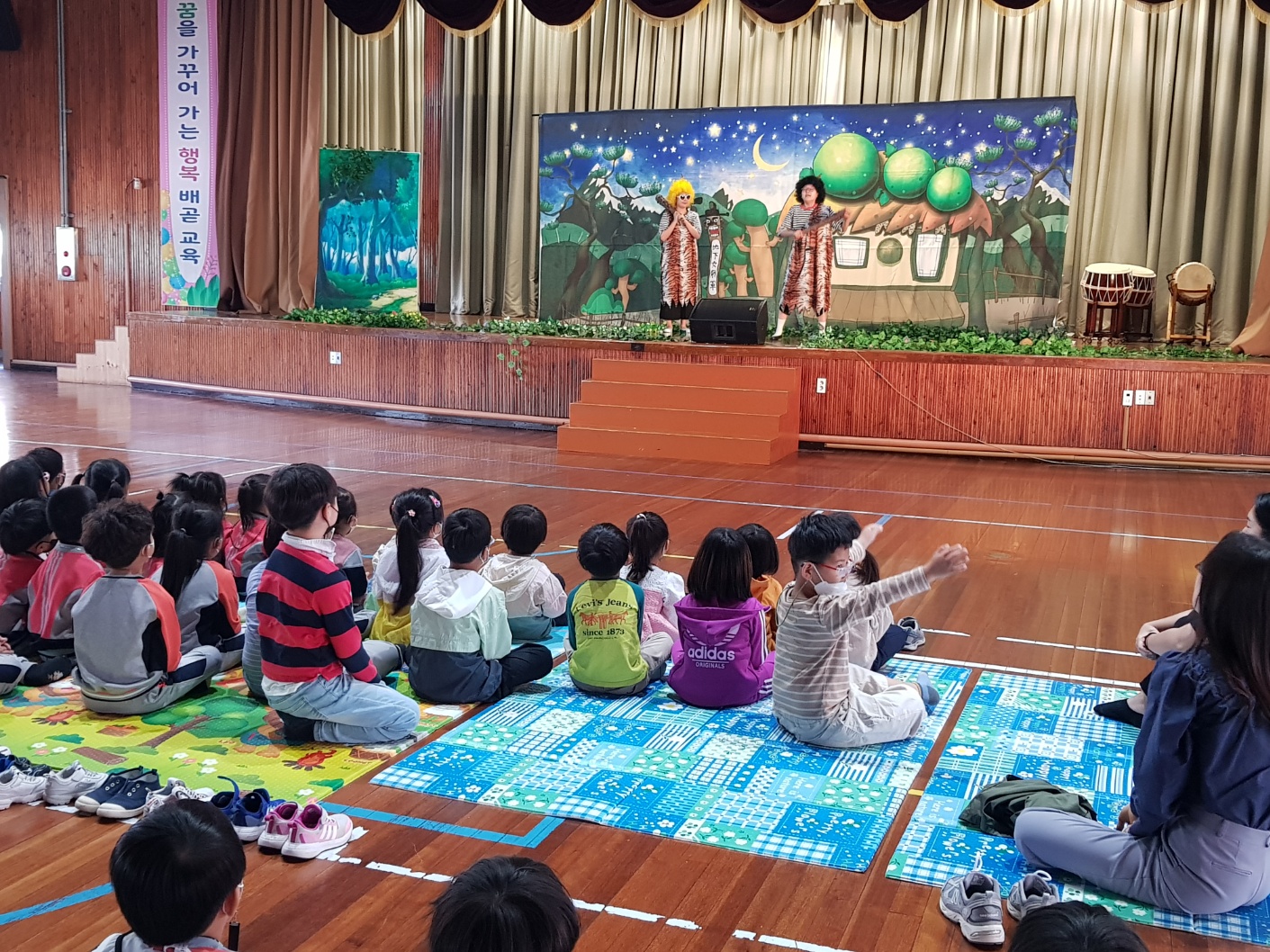 관내 4개의 병설유치원 학생들도 함께 공동교육과정으로 참여한 행사는 ⌜아트 에듀컴퍼니⌟ 기관에서 찾아온 이번 가족사랑 뮤지컬 프로그램은 연극, 노래와 춤, 수화, 마술 등 종합 뮤지컬로 유치원과 초등학교 저학년 학생들이 정말 재미있게 참여하면서 자연스럽게 친구사랑 교육을 목적으로 하였다.