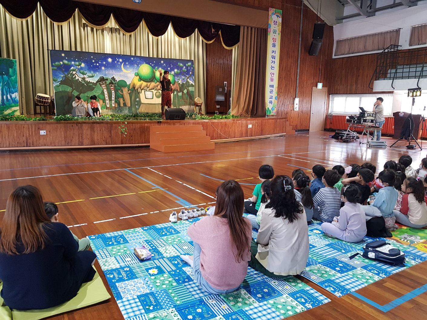 안동초등학교 병설유치원(교장 박이호) 및 초등학교 1, 2학년은 5월 3일(수)에 체육관에서 뮤지컬로 함께 배우고 체험하며 느끼는 찾아오는 친구사랑 유초이음 체험교육을 실시하였다.