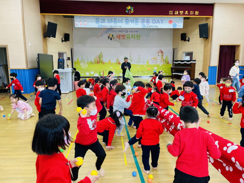 □ 새벗유치원(원장 우수경)은 5월 2일(화) 유아 121명을 대상으로 3층 체육실에서 ‘운동놀이 데이’를 진행했다.