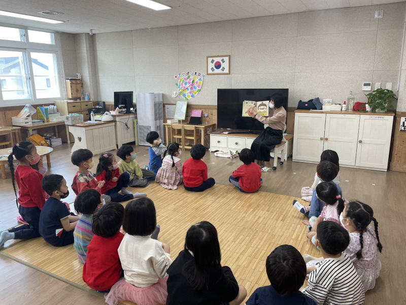□ 새벗유치원(원장 우수경)은 5월 4일(목) 전체유아 121명(6학급)을 대상으로 각 학급 교실에서 그림책 놀이 교실이 운영되었다.