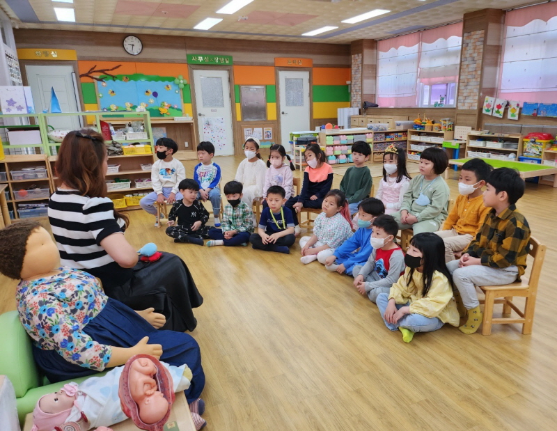 □ 이론 교육이 끝난 후에 다양한 체험교육도 실시하였다. 태동 체험 및 신생아 인형 돌보기 체험을 통해 생명의 소중함과 존엄성을 경험하게 되었다. 이번 성교육을 통해 유아들은 올바른 성 가치관에 대해 인식하고 건강한 성문화를 형성하는 계기가 되었다.