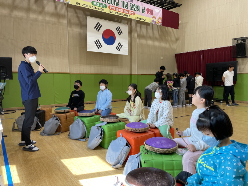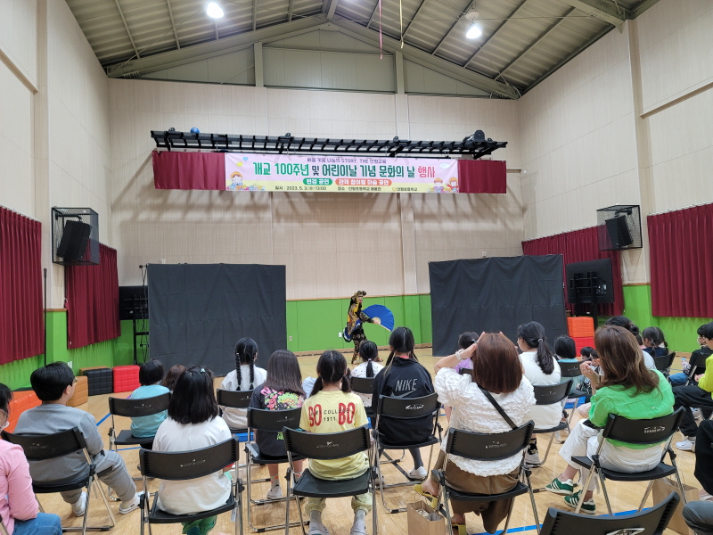 □ 오후에는 개교 100주년과 어린이날을 기념하여 학생들과 학부모, 지역주민들이 함께 참석하는 문화예술 공연이 펼쳐졌다. 변겸 공연과 마술 공연을 관람하면서 문화예술에 대한 관심을 높이고 애교심을 가질 수 있었다.