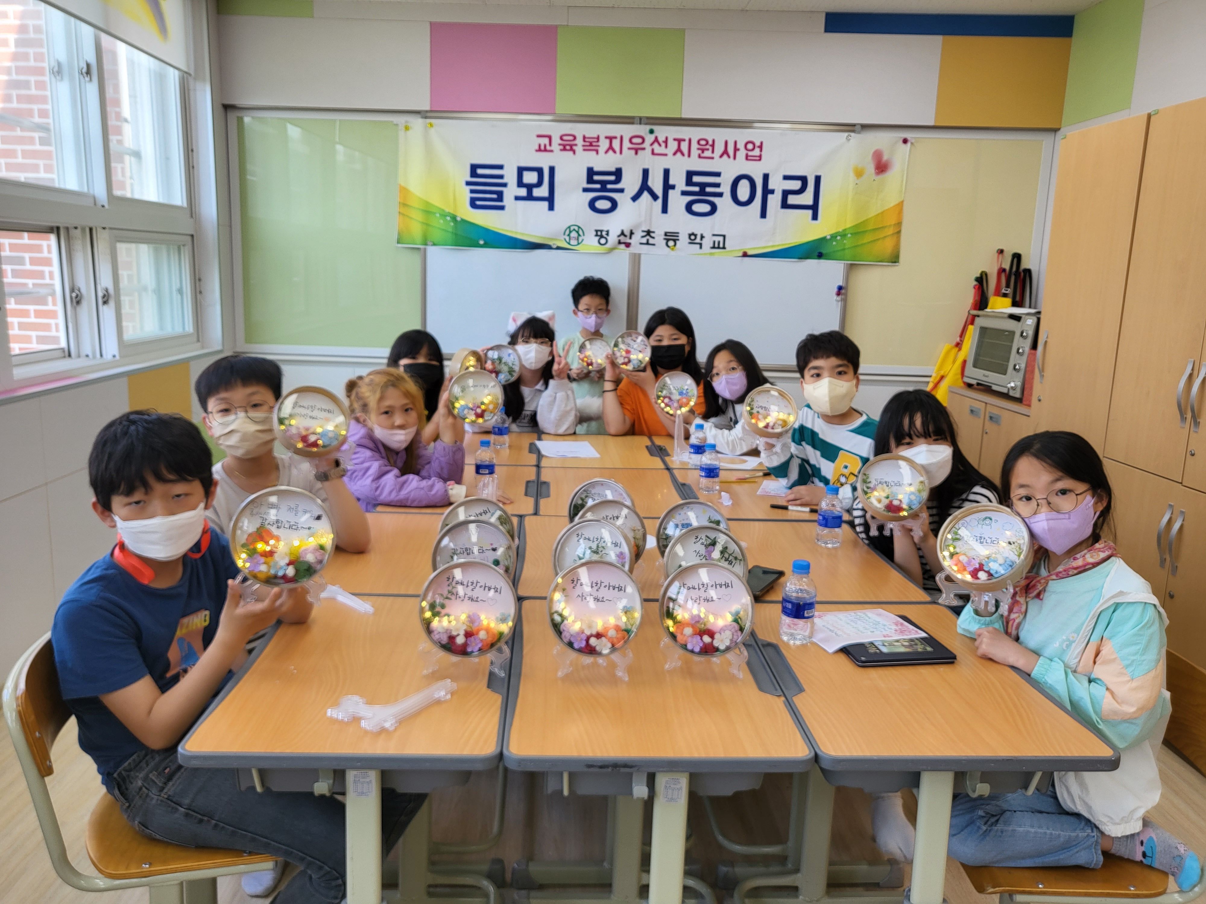 □ 평산초등학교(교장 이재구)는 교육복지우선지원사업의 일환으로 3~6학년 12명으로 구성된 들뫼봉사동아리를 운영하고 있다. 5월 3일에는 3명의 봉사동아리 친구들이 어버이날을 앞두고 지역복지기관과 연계하여 혼자 지내시는 어르신댁을 방문하여 카네이션 액자와 손편지를 전달하였다.