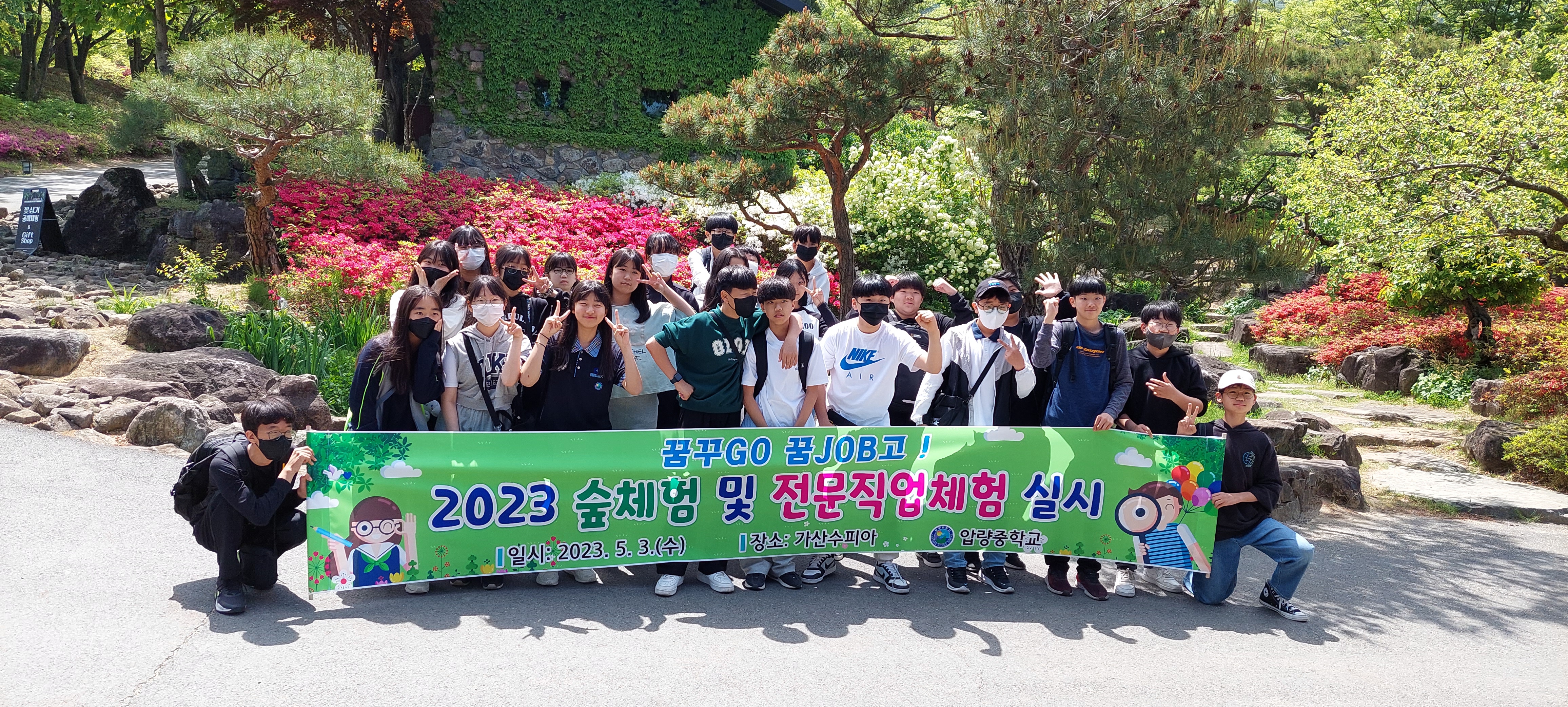 □ 압량중학교(교장 허영선)는 5월 3일(수) 1학년 학생들을 대상으로 가산수피아에서 ‘2023 숲체험 및 전문직업체험’ 을 실시하였다.