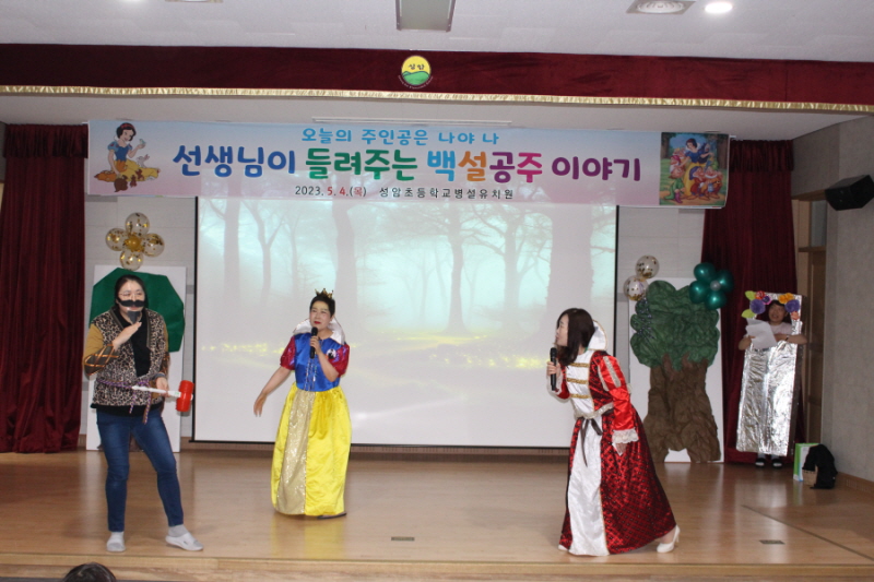 □ 성암초등학교 병설유치원(원장 이영랑)은 101회 어린이날을 맞이하여 선생님이 들려주는 백설공주 공연을 준비하여 유아들이 맘껏 행복해할 수 있는 날이 되도록 하였다.