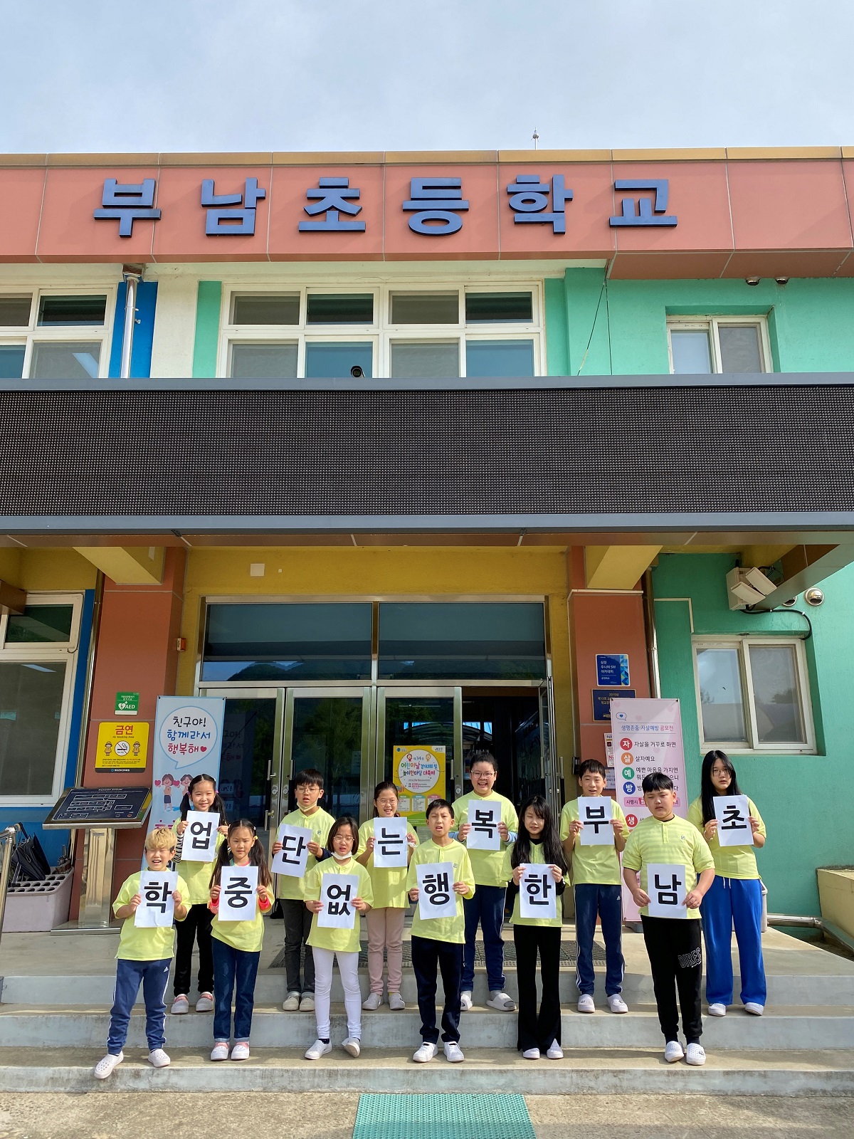 □ 청송 부남초등학교는 5월 4일(목) 오전, 어린이날을 맞아 전교생 12명을 대상으로 학업중단예방 캠페인을 실시하였다.